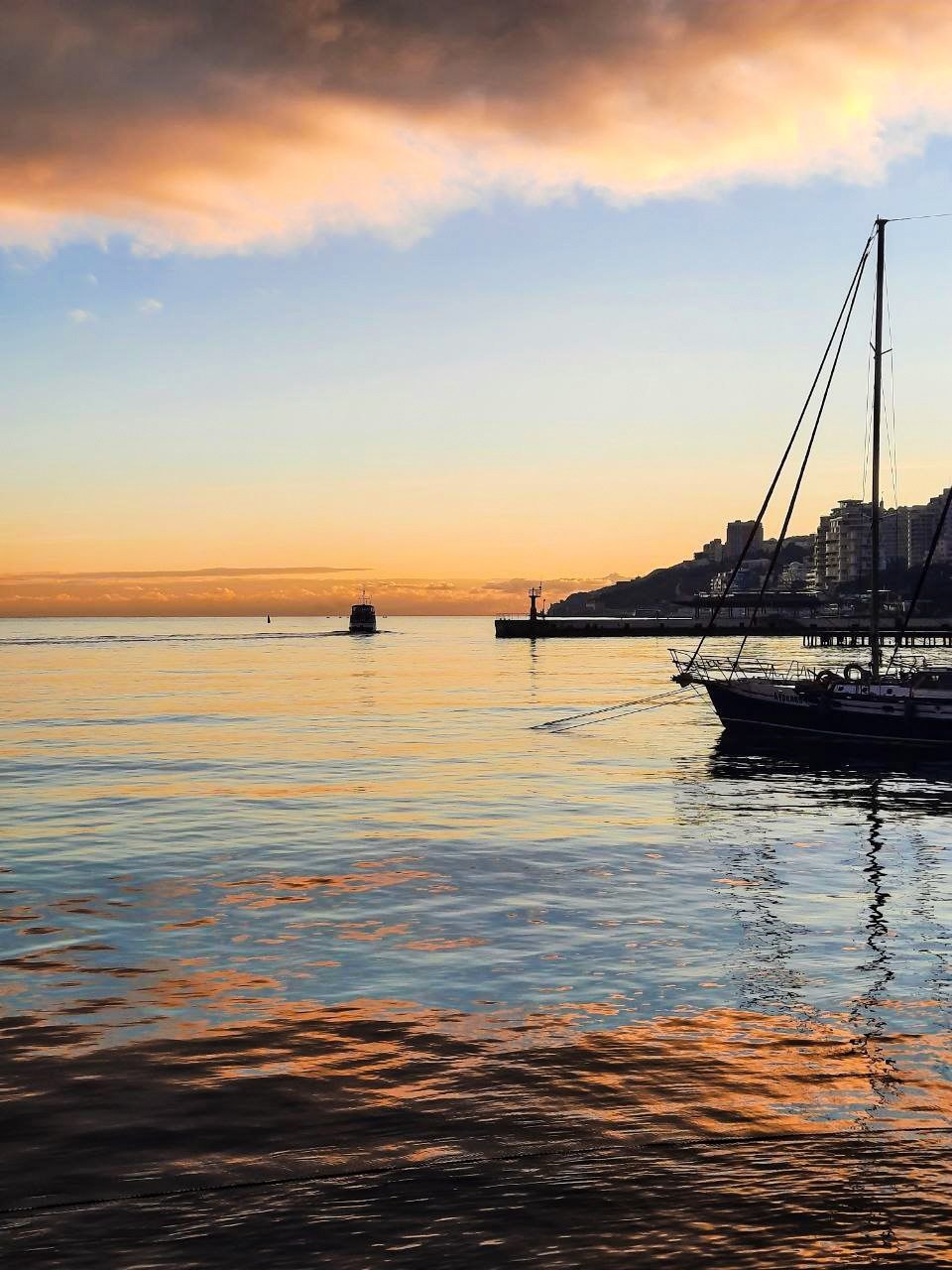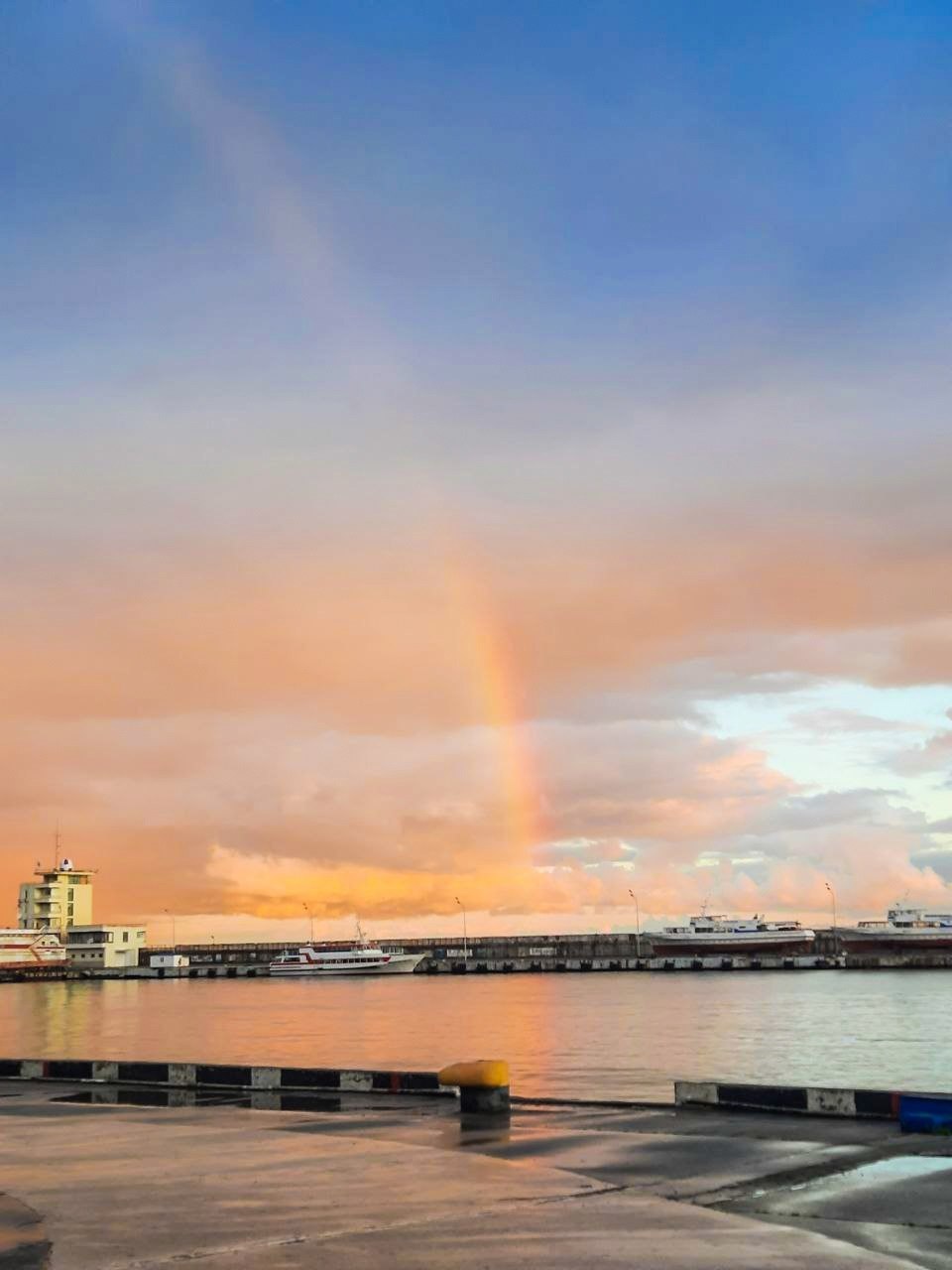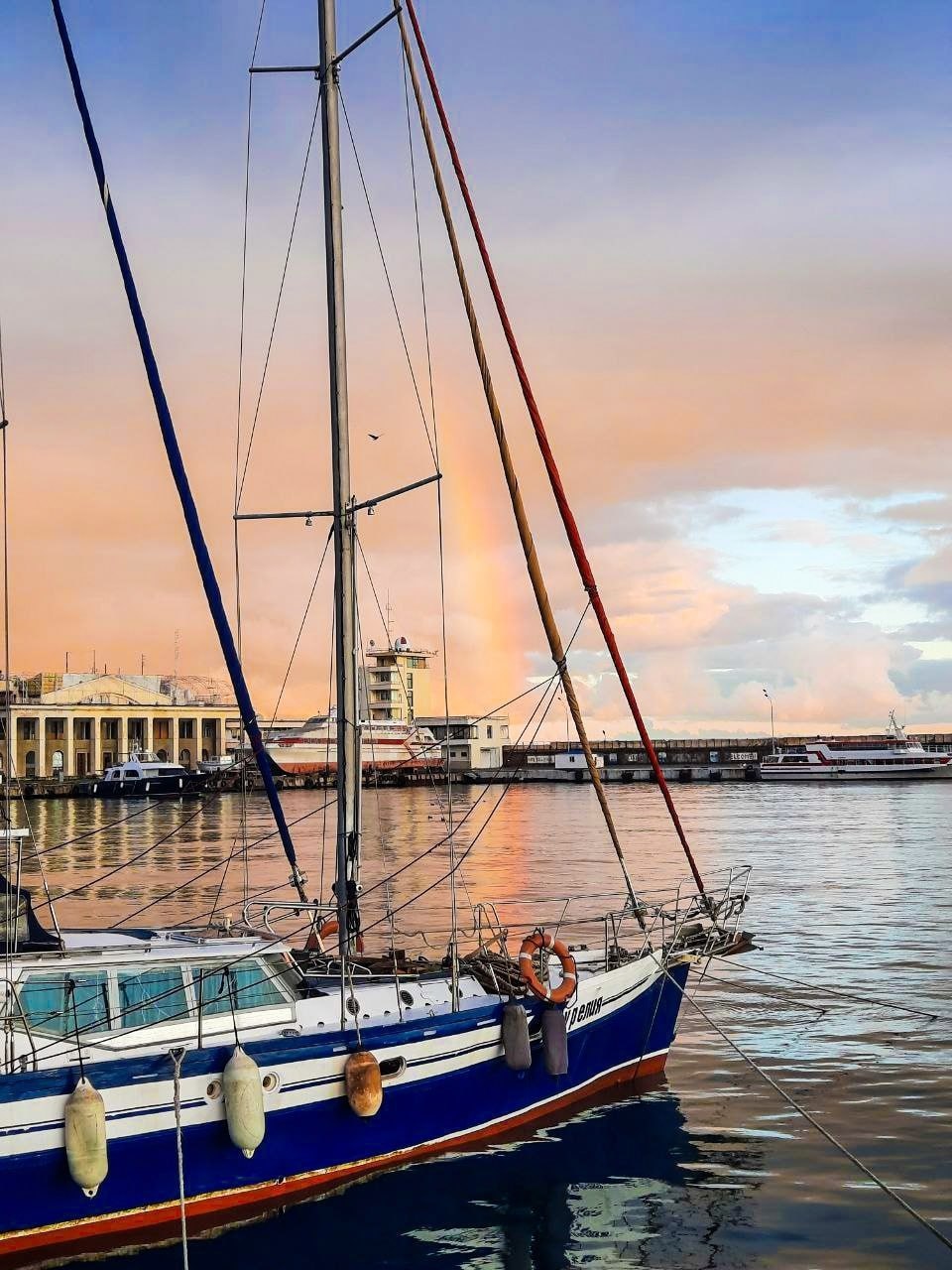 Акварельное небо и радуга на закате после дождя в Ялте.