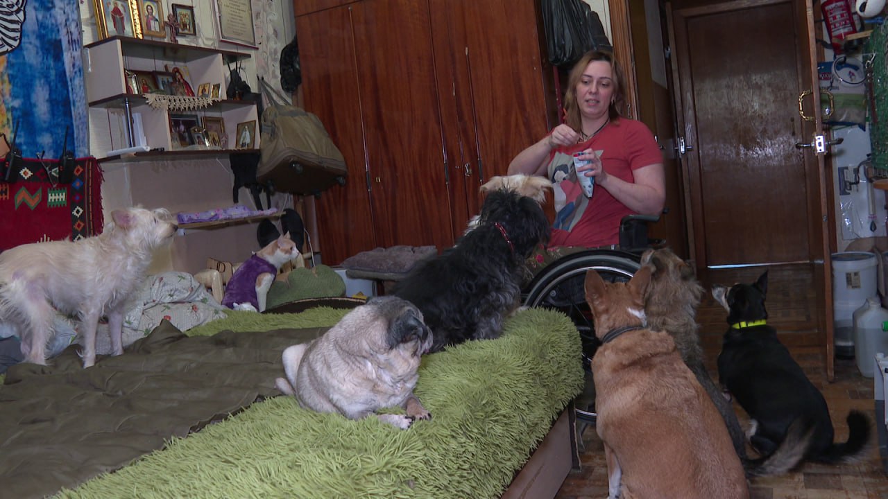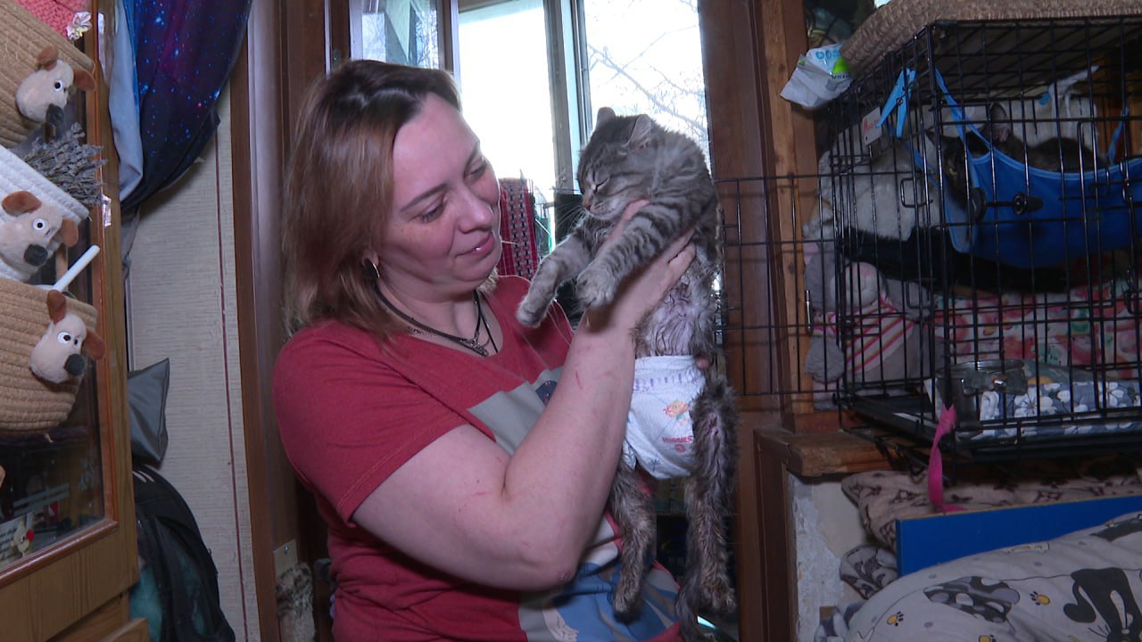 21 кот, 8 собак, 3 грызуна, 2 кролика и 5 птиц. Светлана - инвалид-колясочник, но это не мешает ей ухаживать за животными. Первых питомцев приютила по просьбе сына. Он находил их на улице и просил маму вылечить. Многие оказались с хроническими заболеваниями или тяжёлыми травмами.