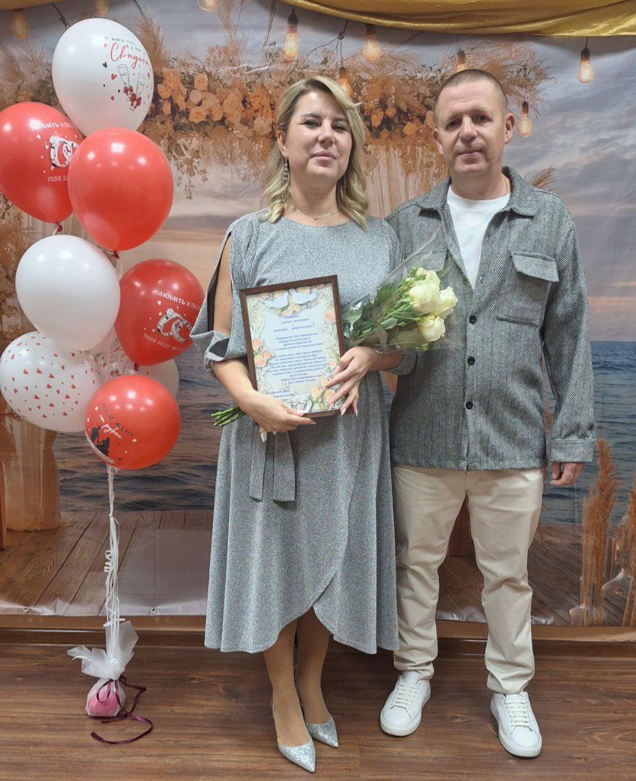 Судьбоносная встреча Сергея и Натальи произошла осенью 1995 года, на деревенской дискотеке, где под звуки музыки и вихрь молодости зародилась их история. С той поры начался их совместный путь – яркий, наполненный теплом и истинной близостью. В 2000 году они скрепили свои сердца узами брака, а в 2001 и 2006 годах их семья пополнилась сыном и дочерью, наполнив дом звонким смехом и глубоким смыслом. Вот уже четверть века они идут рука об руку, сохраняя любовь, уважение и тот самый огонек, что зажегся в ту осеннюю ночь 1995 года. Пусть их история продолжается долгие годы – ярко, тепло и красиво, как всё, что они создали вместе!