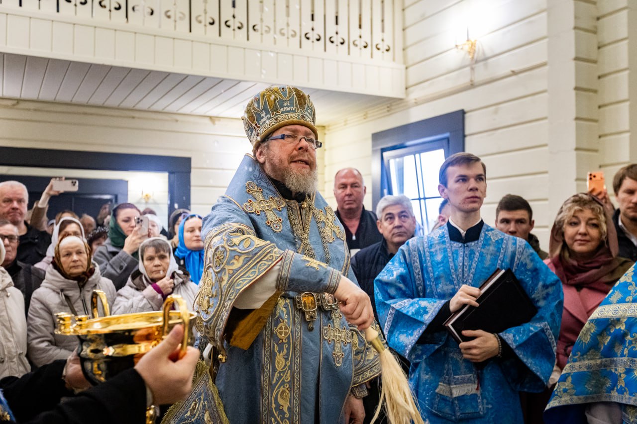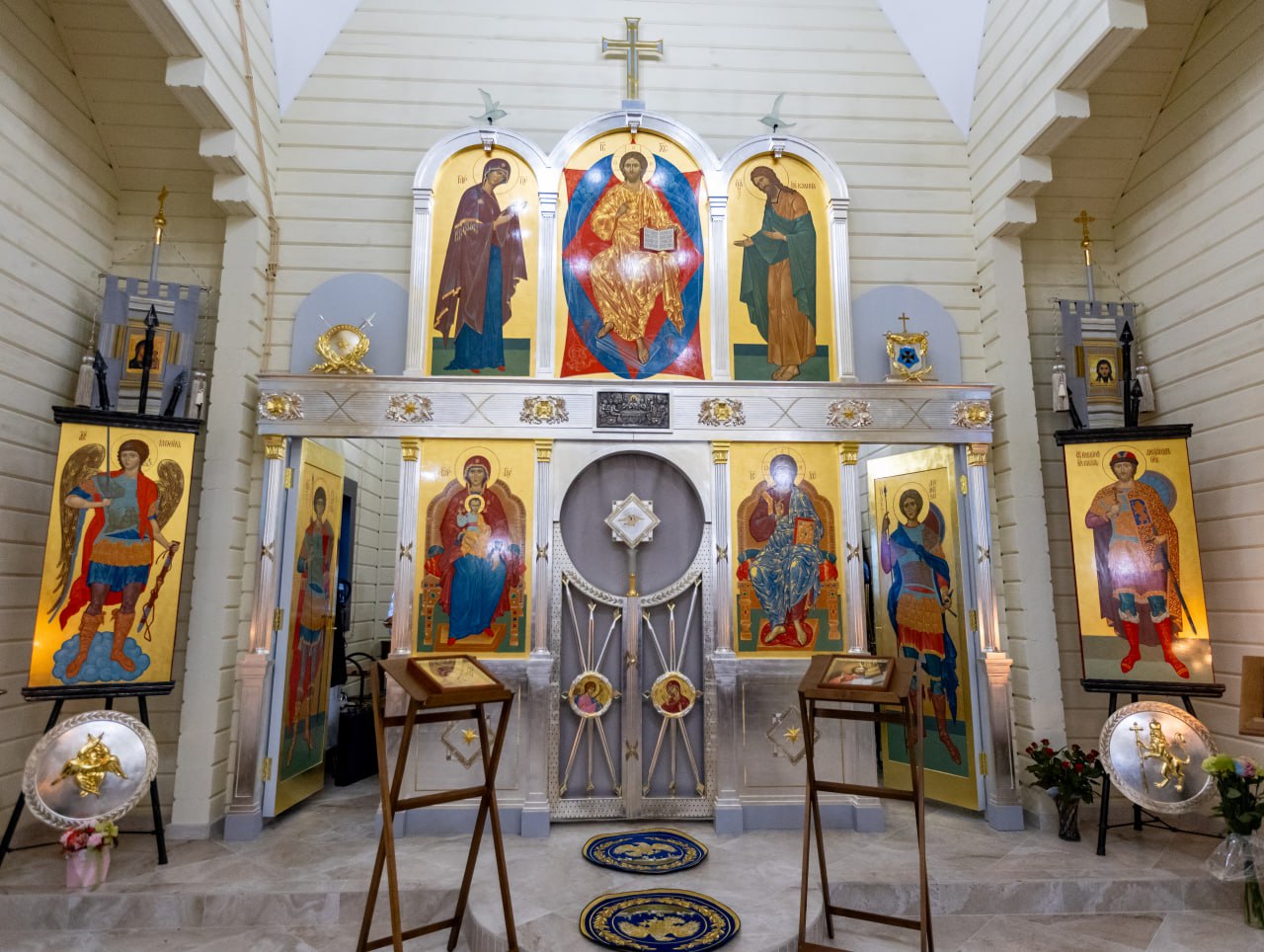 Первую Божественную литургию в новоосвященном храме правящему архиерею сослужили: секретарь Симферопольской и Крымской епархии, и. о. благочинного Евпаторийского церковного округа протоиерей Иоанн Пристинский; личный секретарь правящего архиерея иерей Кирилл Иванисов; настоятель храма иерей Даниил Солошенко, евпаторийское духовенство; гости в священном сане.