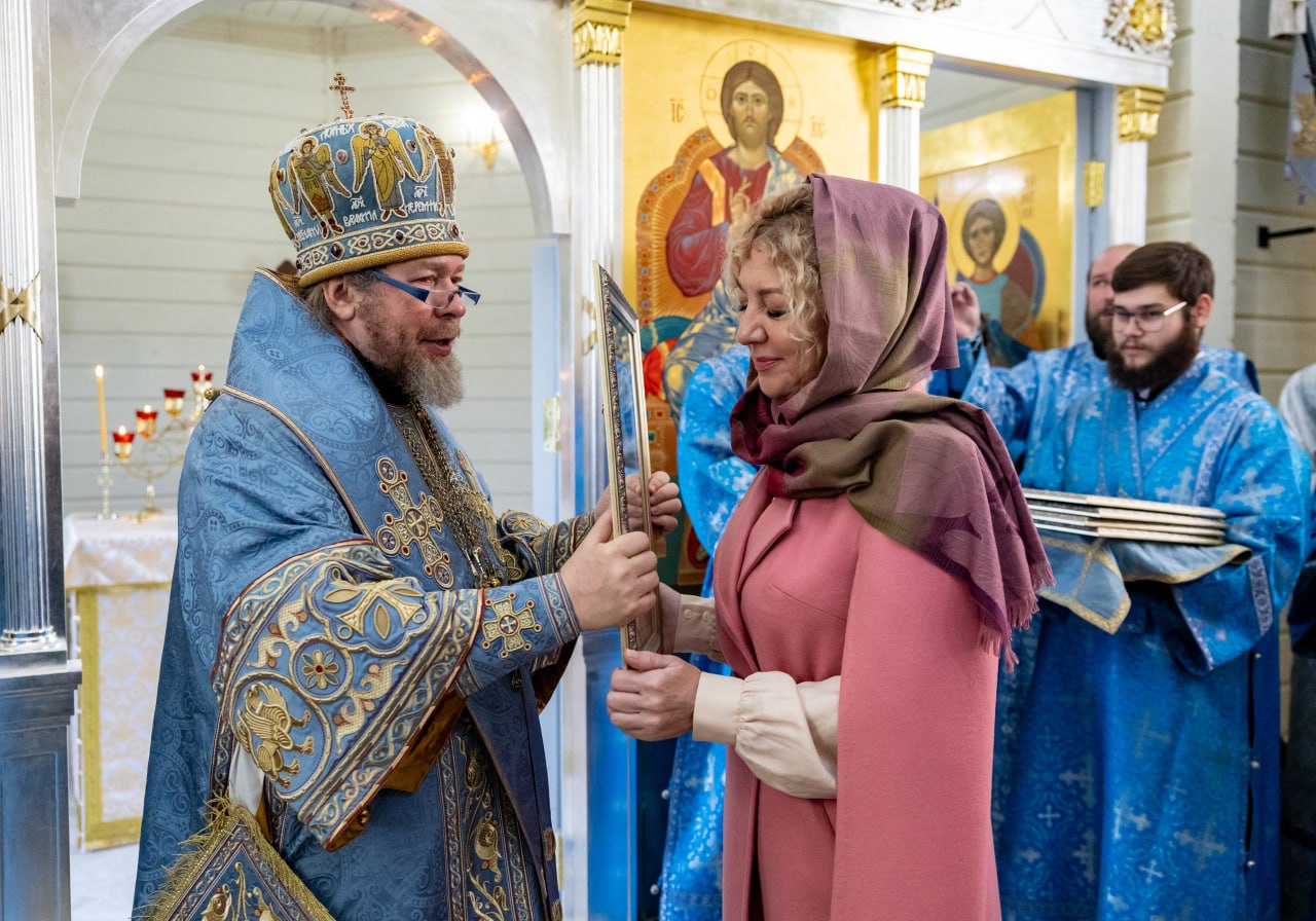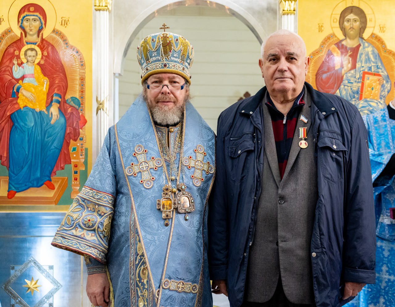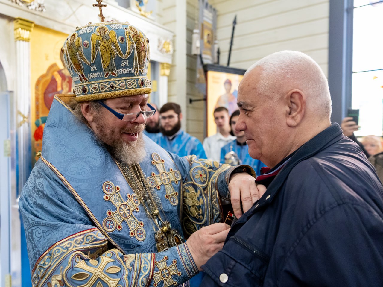 В завершение богослужения владыка Тихон вручил заслуженные награды всем, кто помогал строить храм, способствовал его возведению в кратчайшие сроки (всего за полгода), всем, кто внёс посильную лепту пожертвований на обустройство церкви. Среди награждённых: В. Н. Аксёнов, депутат Госсовета РК; благотворители Д. И. Сауилиди и Ю. И. Саулиди; А. Ю. Юрьев, глава администрации г. Евпатории; Г. В. Герасимова, глава МО г. Евпатория; С. Н. Грецкий, помощник Главы РК С. В. Аксёнова; Салюк А.С., помощник депутата Госсовета РК В. Н. Аксёнова; С. М. Колганов, зам. главы администрации г. Евпатории.