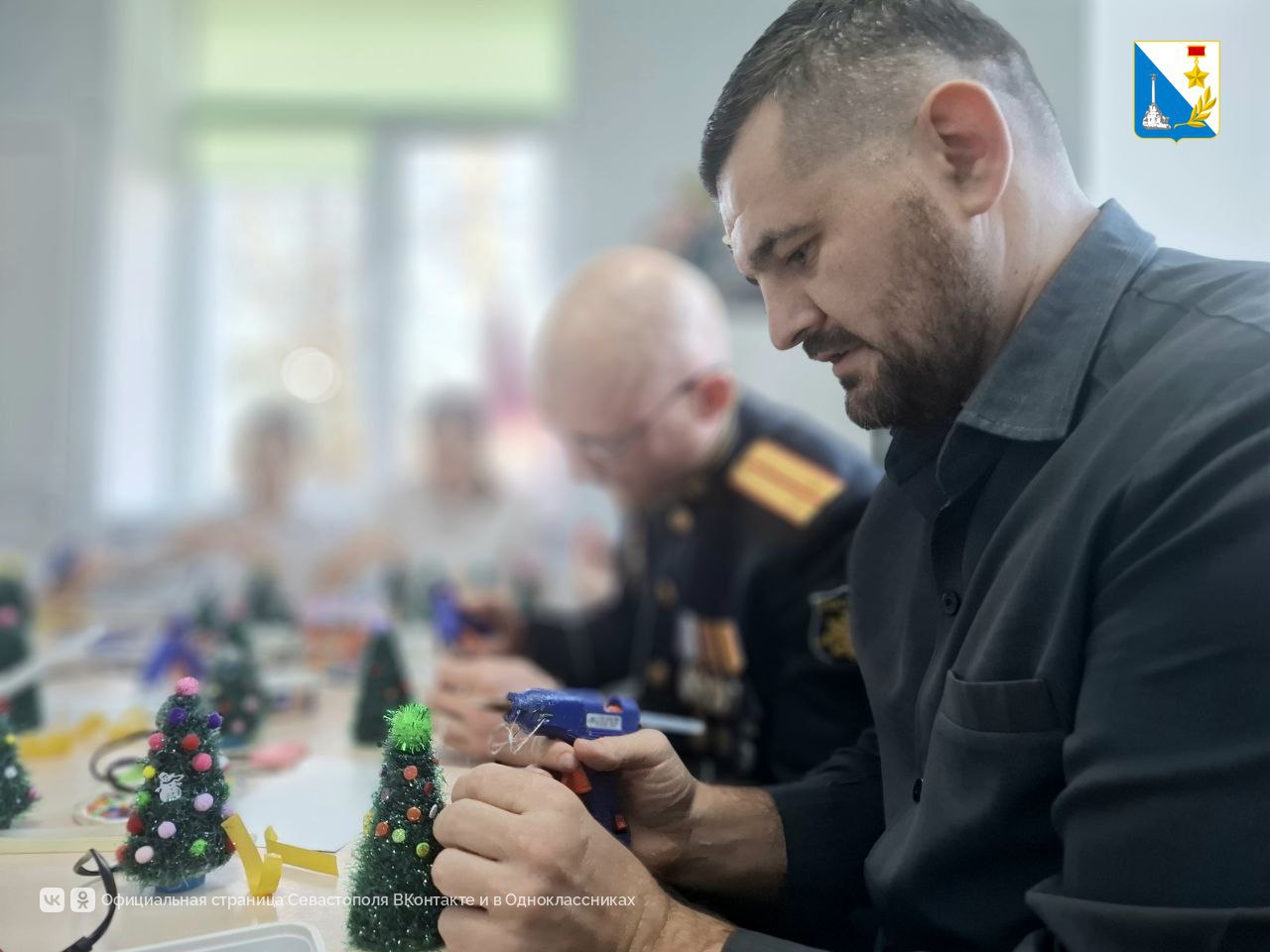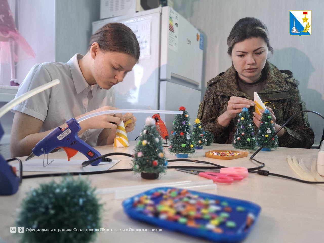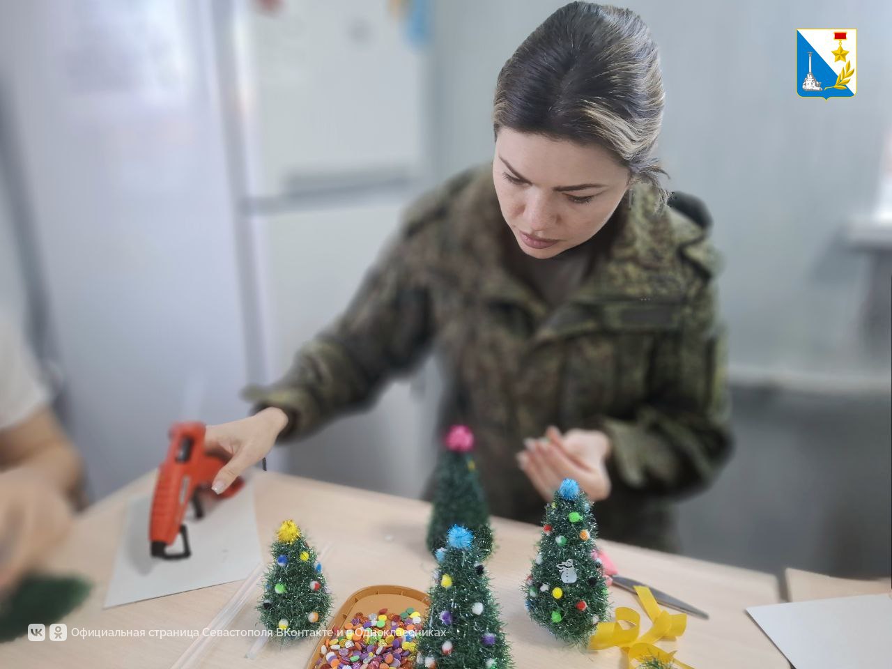 Вместе с защитниками дети мастерили настольные ёлочки и говорили о фронтовой жизни. Изготовленные подарки вместе с письмами отправят на передовую в ближайшее время.