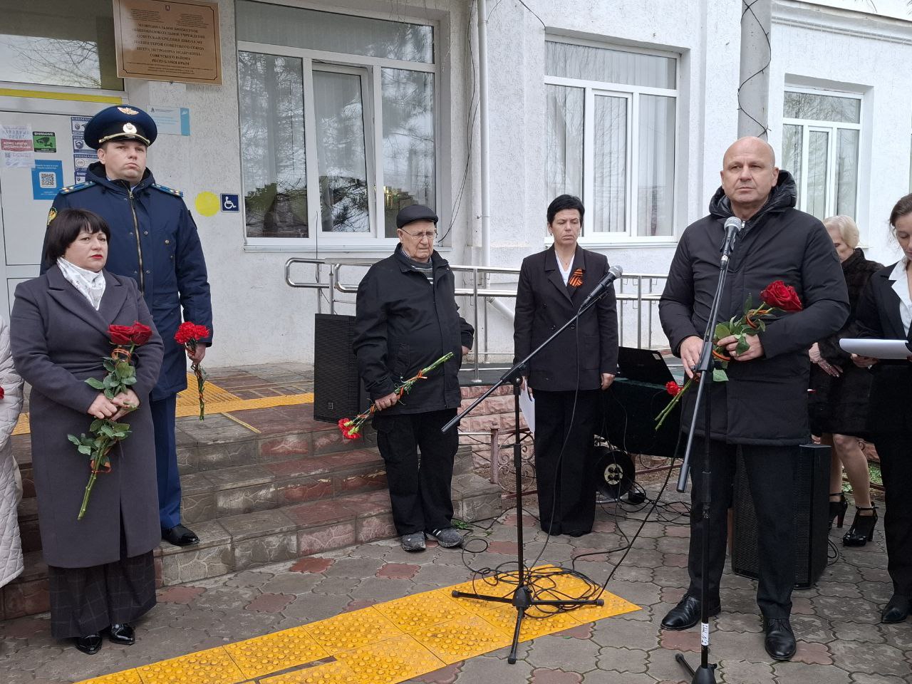 В открытии приняли участие мать и дедушка Героя, сотрудники военного комиссариата, военнослужащие, председатель Советской районной ветеранской организации Любовь Крюковская, педагоги и школьники.
