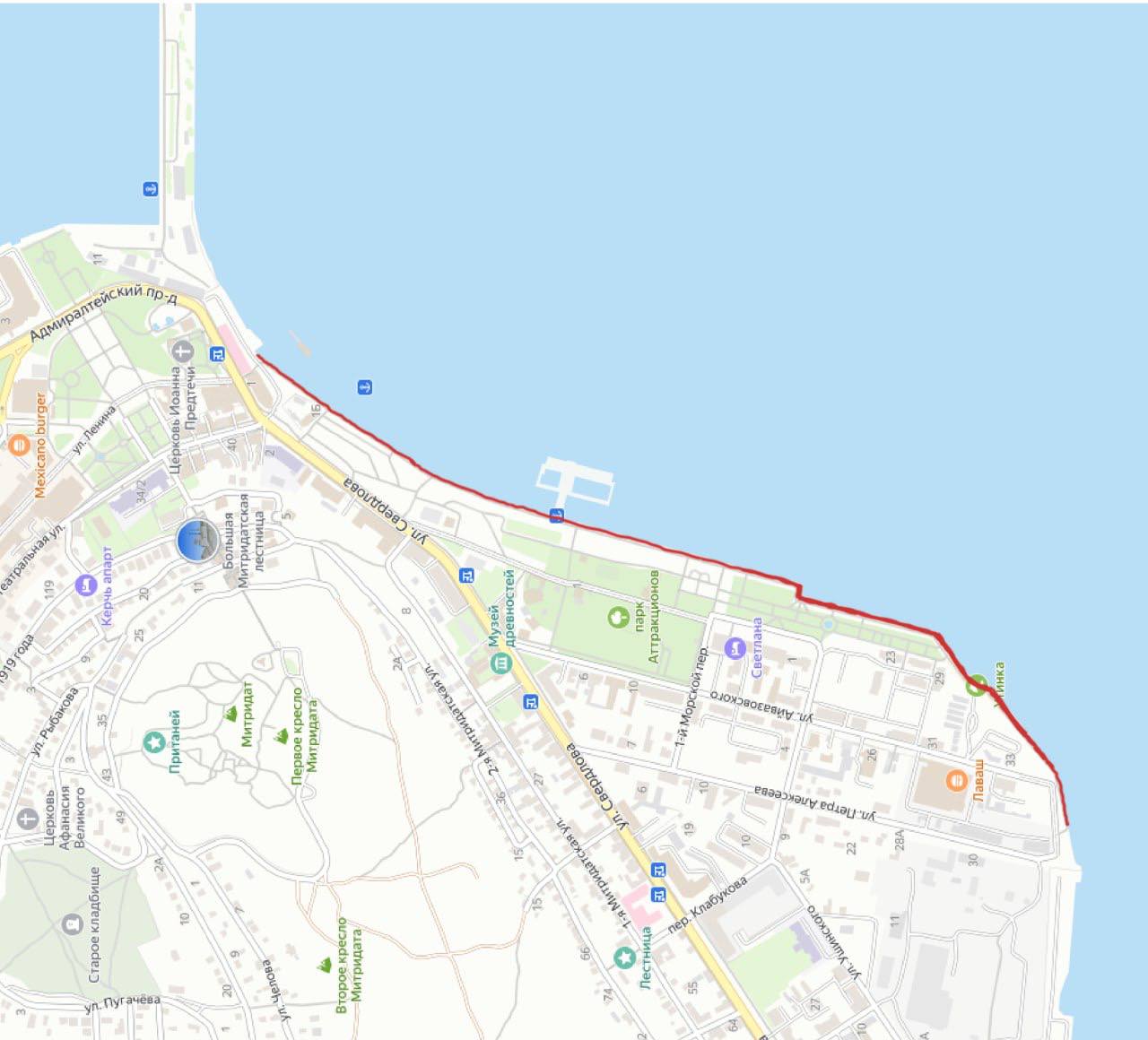 Ранее сооружения были переданы в собственность Республики Крым. Это часть набережной, расположенная непосредственно по урезу воды (от Генмола по зону отдыха «Утинка»).