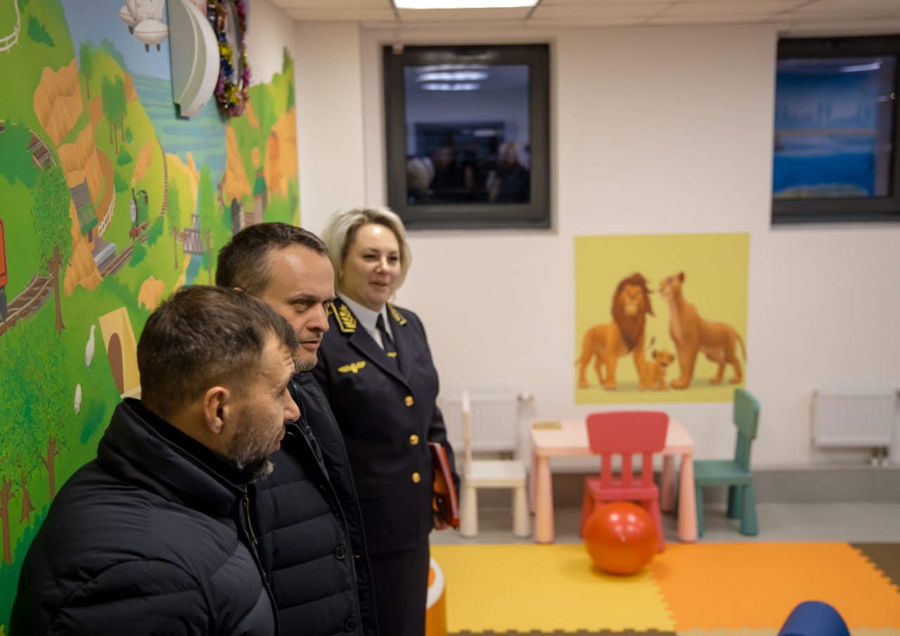В сопровождении руководителя Росжелдора Александра Сахарова, главы ДНР Дениса Пушилина и гендиректора ФГУП «Железные дороги Новороссии» Андрея Казакова Андрей Никитин ознакомился с работой вокзального комплекса, в том числе посетил детскую комнату, открытую специально для маленьких пассажиров.