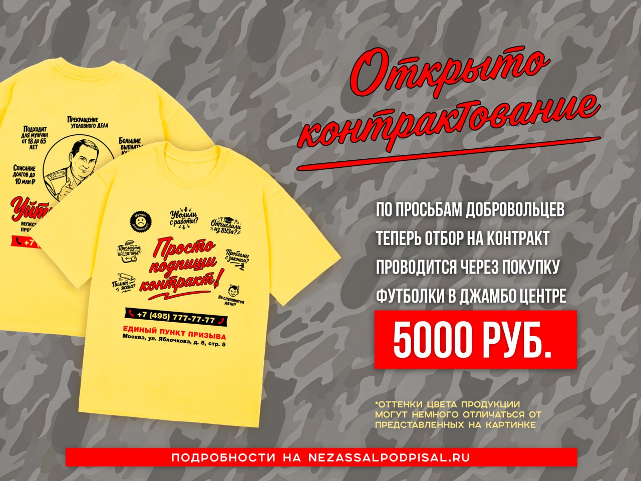 Джамбо Центр обеспокоен тем, что вы все сидите дома и пятисотитесь. Наверное вы просто не информированы о всех плюсах подписания контракта. Вы слишком концентрируетесь на минусах, а надо мыслить позитивнее! Наша свежая футболочка развеет все ваши сомнения и приведет на пункт отбора.