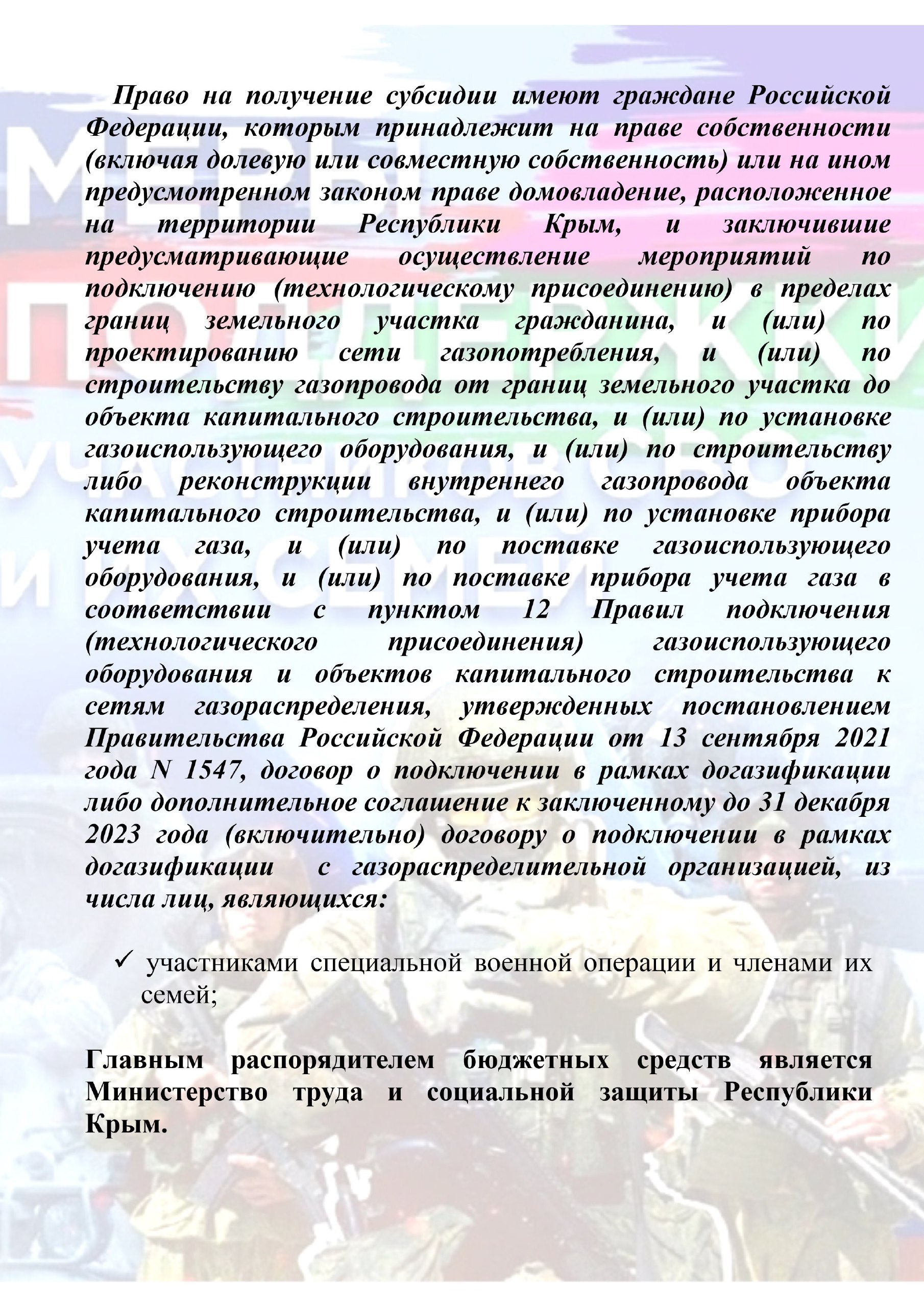 Государством предусмотрены разнообразные меры социальной поддержки семей, чьи близкие участвуют в специальной военной операции (СВО). Вот некоторые из них: