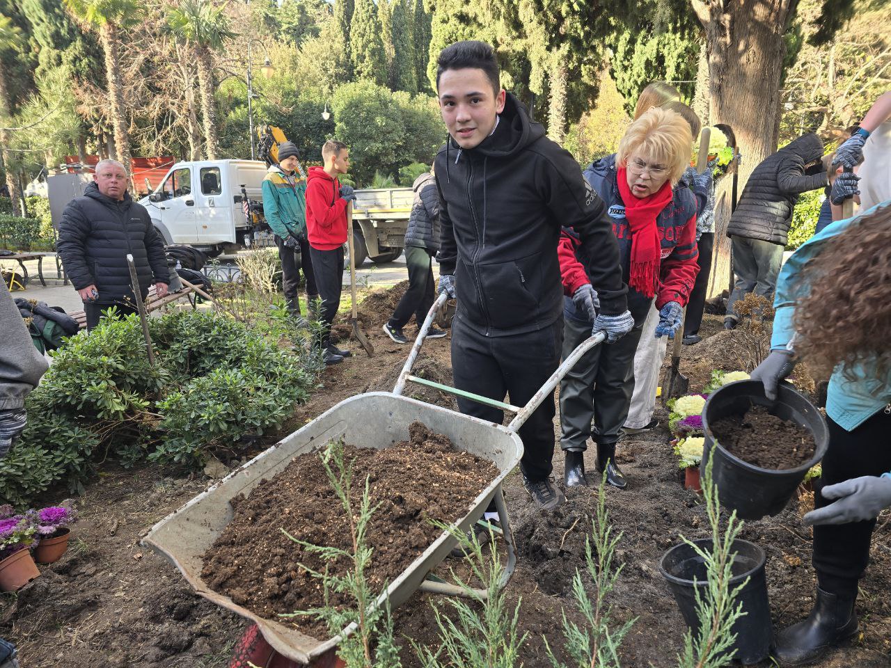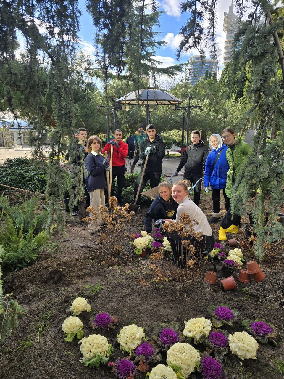 Педагоги, обучающиеся творческих объединений и ученики аграрного класса школы №11 высадили два вида сосен, плакучий кедр, гортензии, можжевельники различных сортов, питтоспорум и декоративную капусту. Получилось ярко и красиво! Каждый сезон ребята будут помогать обновлять клумбу и, при необходимости, ухаживать