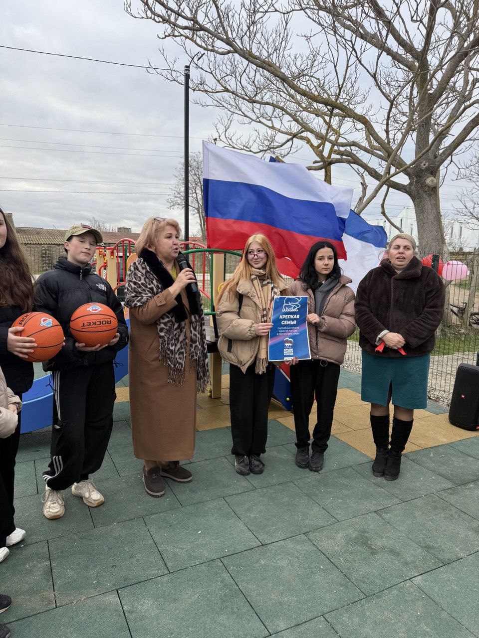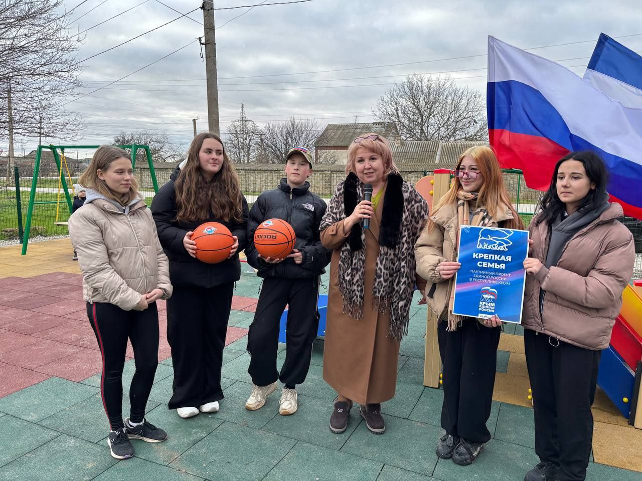 Заместитель главы администрации Сакского района Светлана Дорошенко с главой администрации Митяевского поселения Риммой Миргородской поздравили ребят, выразили уверенность, что площадка будет бережно использоваться и только по назначению.