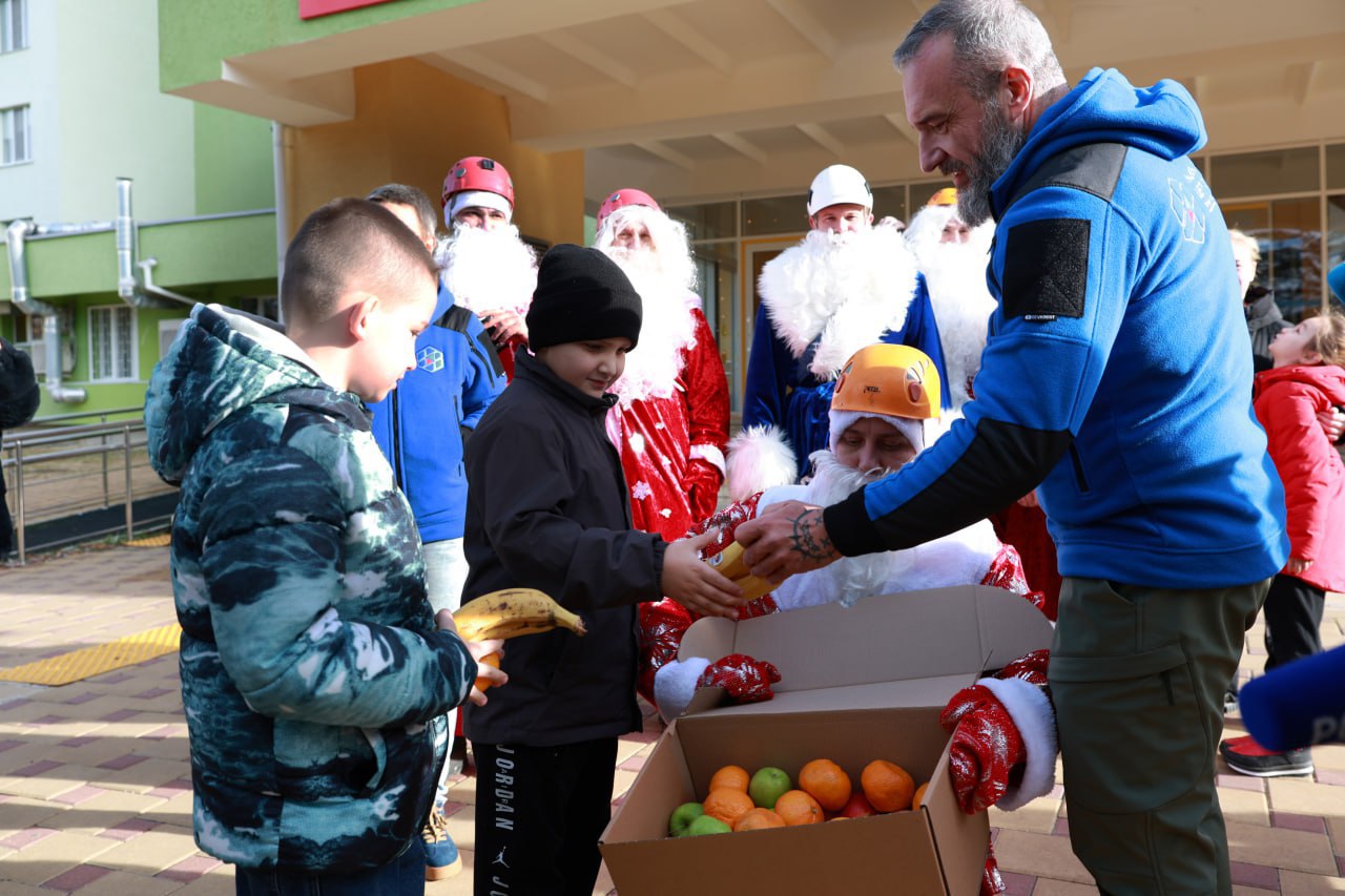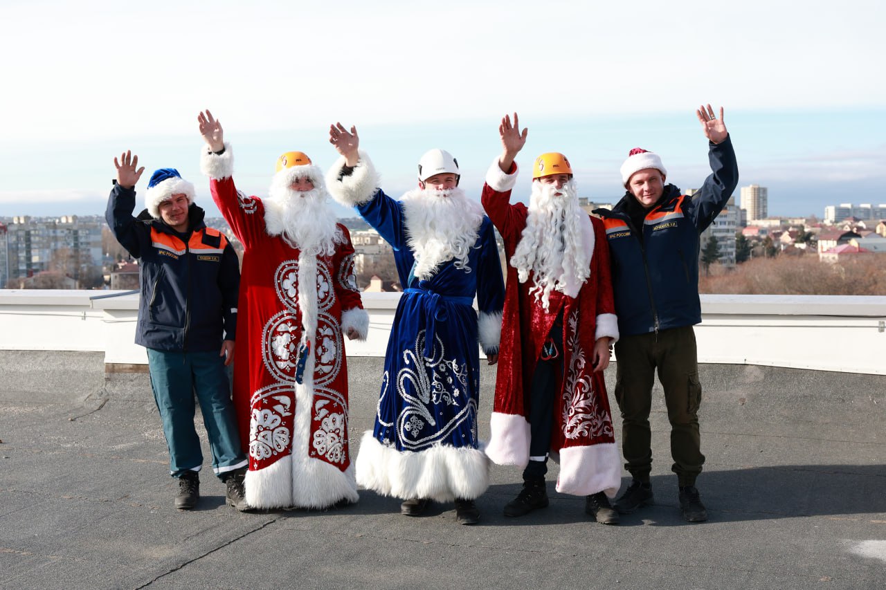 Шесть спасателей, используя профессиональное альпинистское снаряжение, спустились к окнам палат в костюмах Дедов Морозов. Спасатели и волонтеры также передали ребятам полезные подарки и пожелали им скорейшего выздоровления.