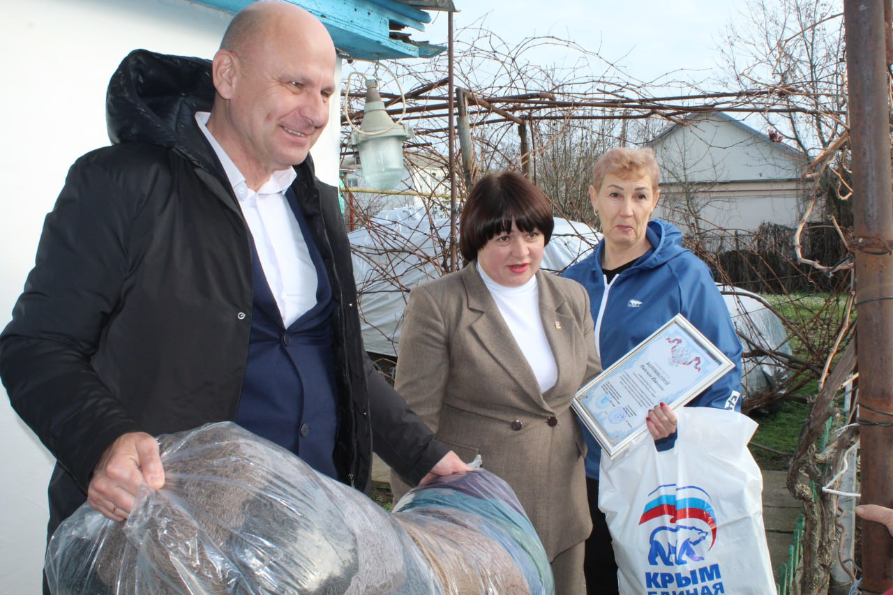 19 декабря председатель Советского районного совета Виктория Грицай совместно с главой администрации Советского района Александром Харламовым посетили жительницу п. Советского - Боровикову Надежду Ивановну, которая с первых дней проведения Специальной военной операции вяжет и передает на фронт шерстяные носки для бойцов. На сегодняшний день ее заботливыми, материнскими руками связано 400 пар шерстяных изделий.