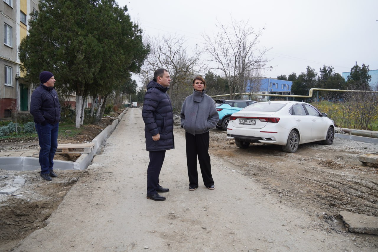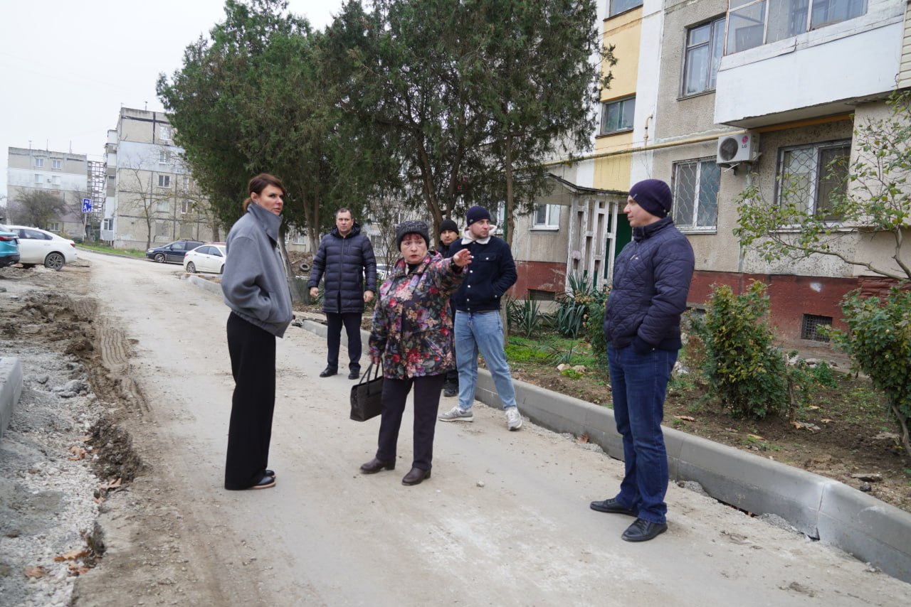 Глава администрации Керчи Олег Каторгин проинспектировал работы по благоустройству дворов по ул. Ворошилова, 21, 23 и ул. Блюхера, 6, 8.