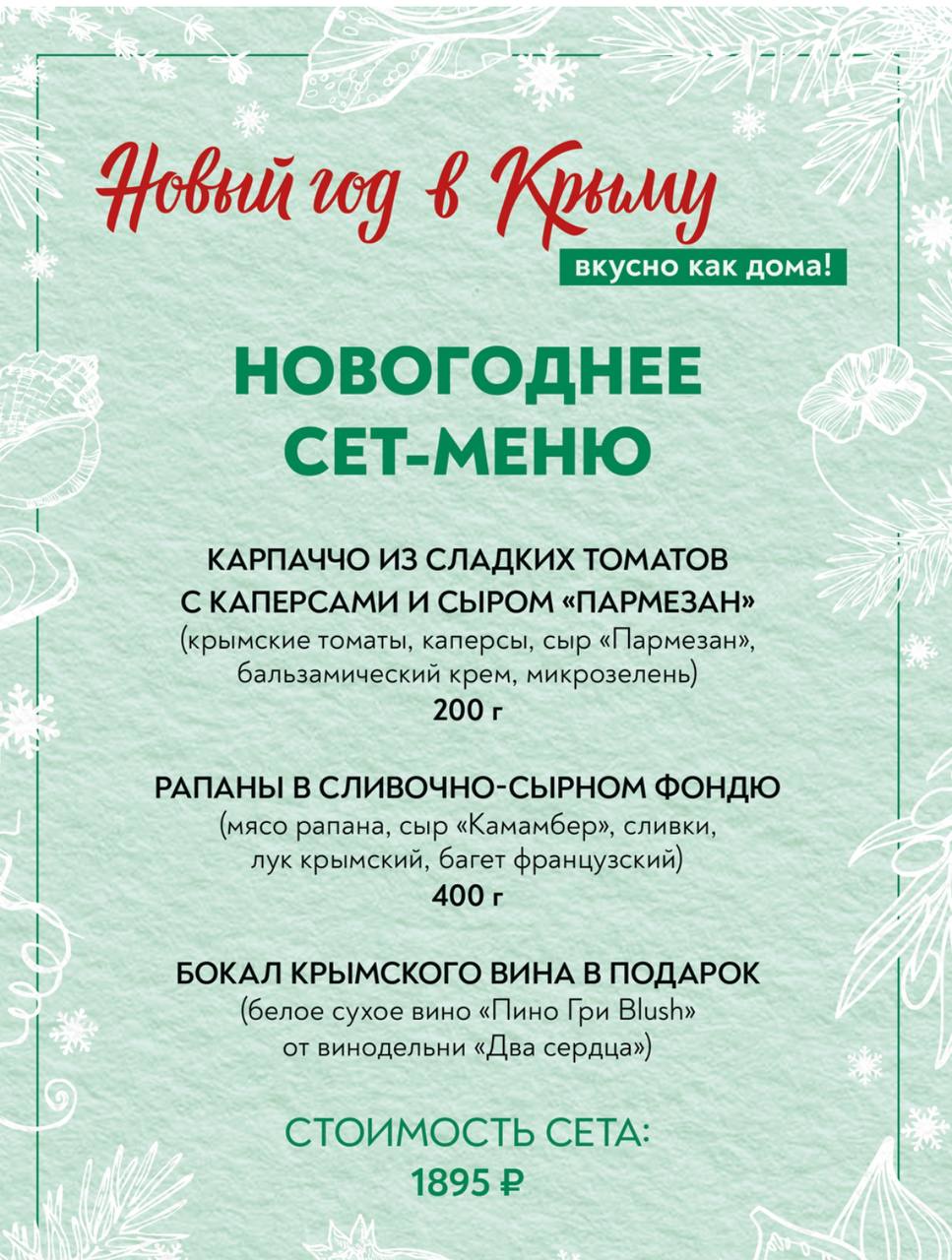 В рамках ежегодного спецпроекта «Новый год в Крыму как дома!» рестораны полуострова разработали специальное сет-меню с акцентом на локальные продукты.