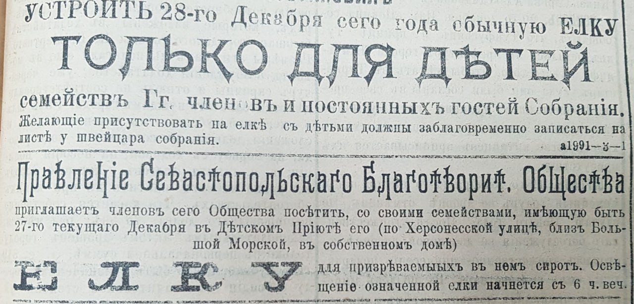 Благотворительные общества устраивали ужины и дарили подарки своим "подопечным" - детям-сиротам и бедным представителям национальностей. Особо помогали "своим" Еврейское и Караимское благотворительные общества...