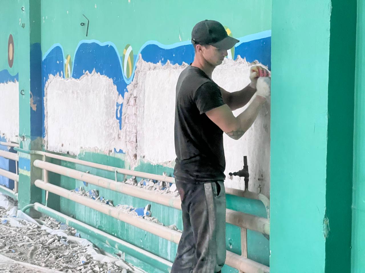 В школе № 13 приступили к капитальному ремонту спортивного зала. Сейчас в помещении площадью в 270 кв. м ведутся демонтажные работы.