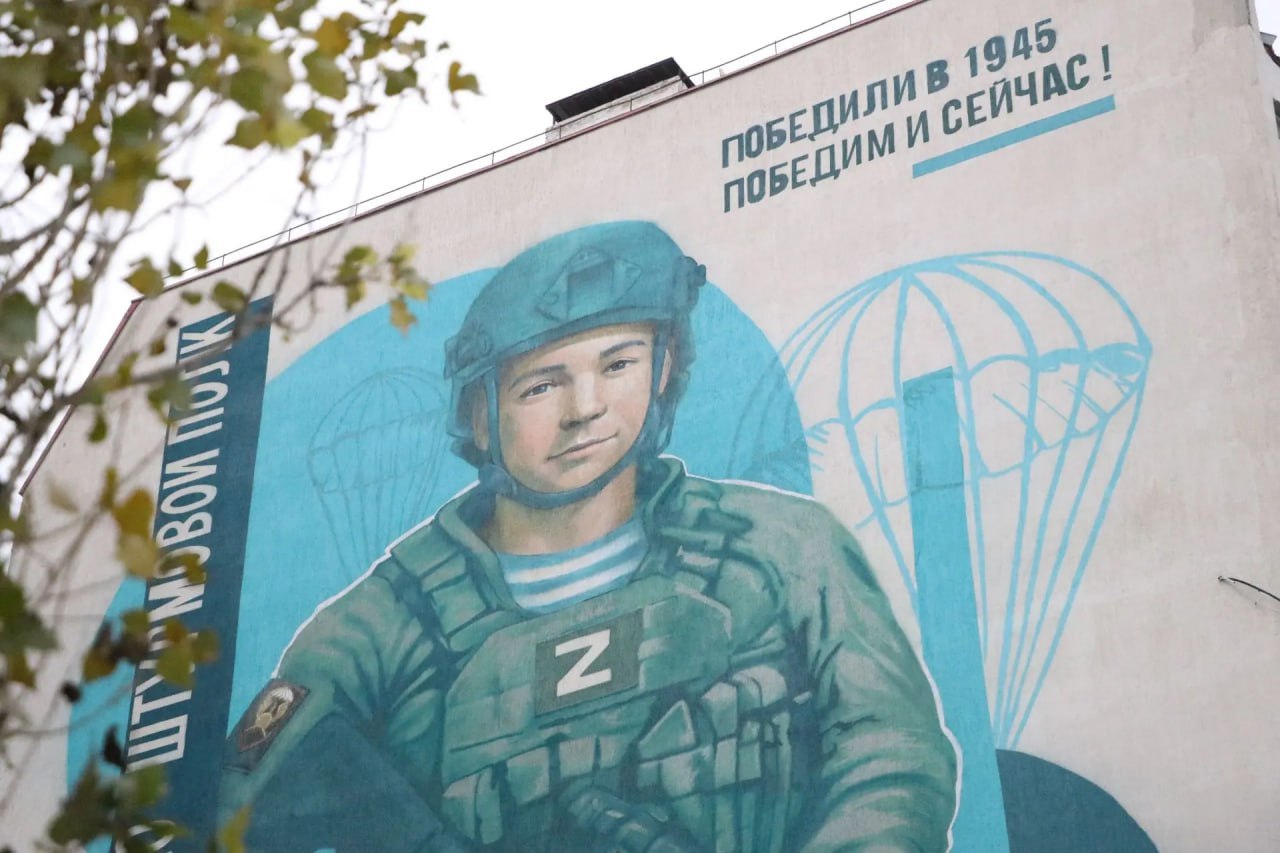 Мурал, посвященный 56 десантно-штурмовому полку, бойцы которого участвуют в СВО, украшает фасад многоквартирного дома по ул. Боевая.