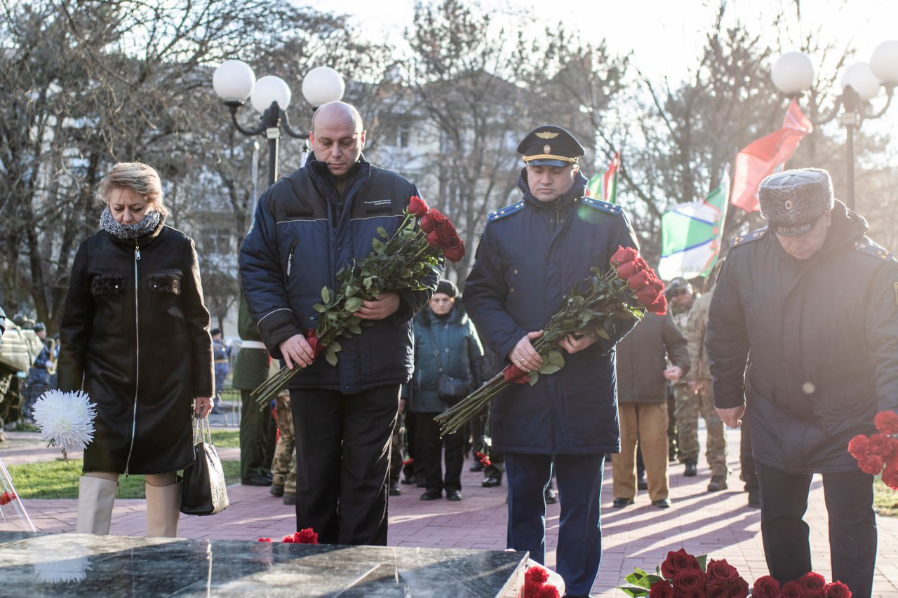 Присутствующие почтили минутой молчания погибших воинов и возложили цветы к мемориалу Крымчанам, погибшим в Афганистане.