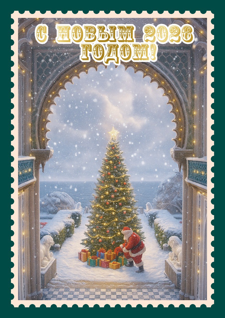 А теперь мы рады представить вам серию праздничных открыток с Воронцовским и Массандровским дворцами!