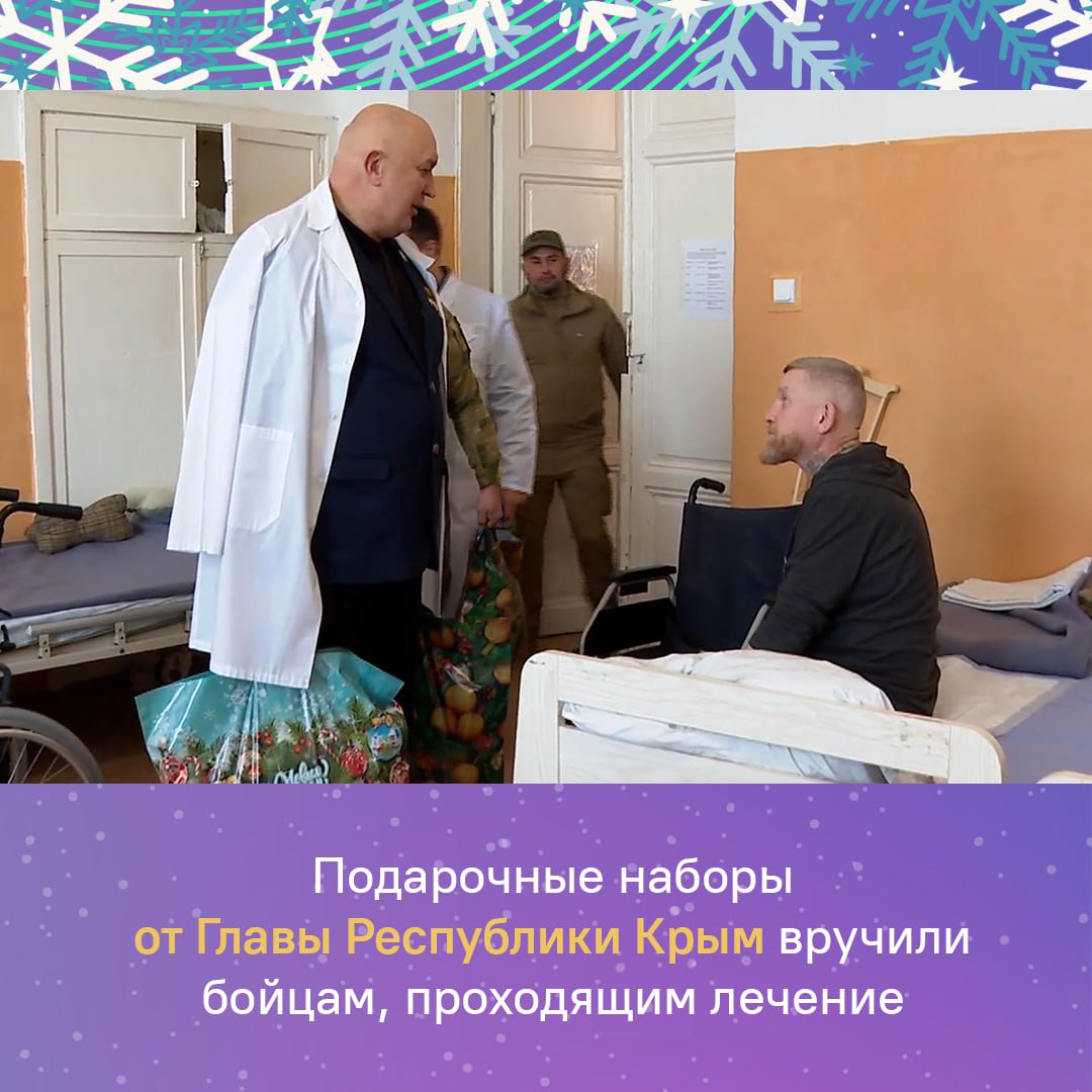 Нашим защитникам, проходящим реабилитацию, вручили праздничные подарки от Главы Крыма Сергея Аксёнова.