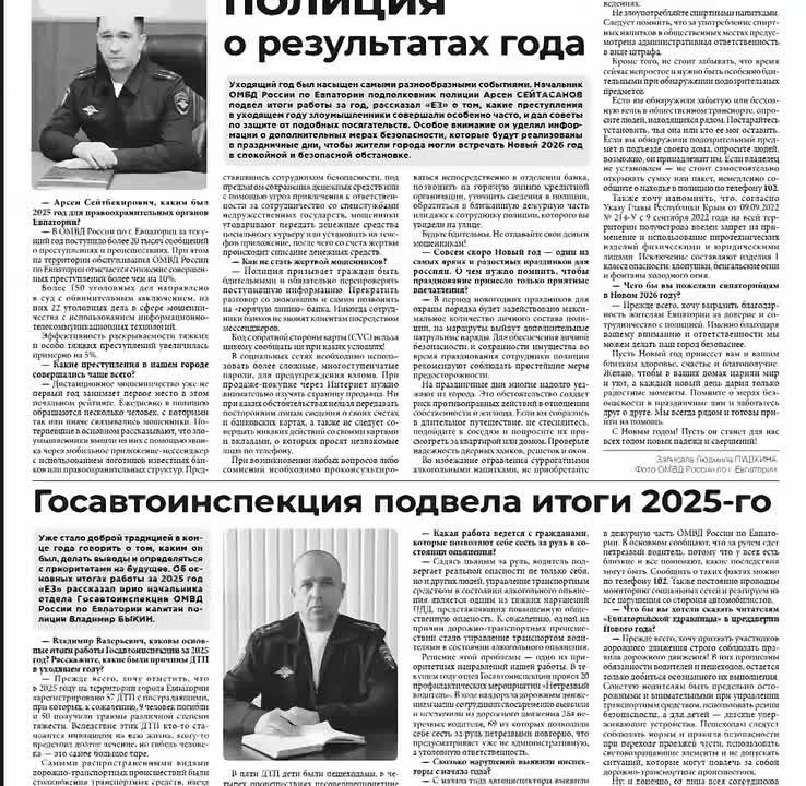 Отдел МВД России по городу Евпатории и Госавтоинспекция ОМВД России по городу Евпатории подвели итоги года;