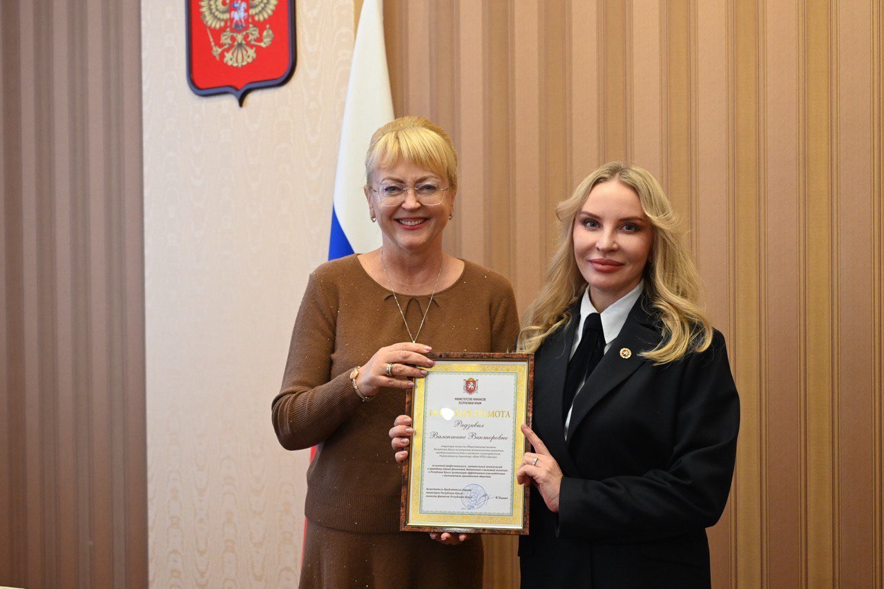 Валентина Радзивил удостоена Почётной грамоты Министерства финансов Республики Крым