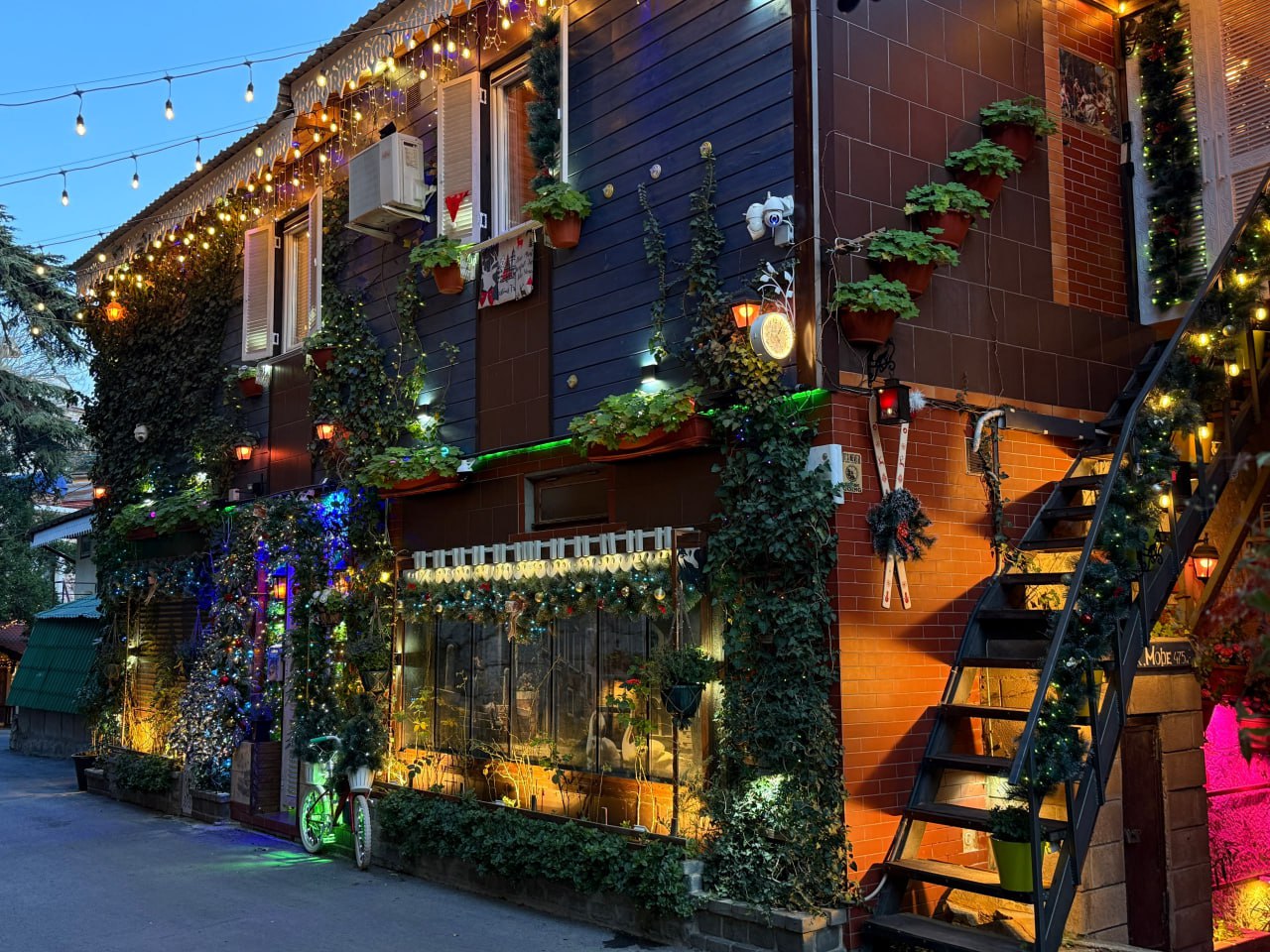 Дом восьмиквартирный и, между прочим, 1917 года постройки! Его преображение началось по инициативе одного из жителей – Дмитрия Пичугина. Он вдохновился старыми фотографиями Алупки и итальянскими улочками, где по фасадам тянутся вьющиеся растения – и высадил плющ, который позже дополнили другие растения. Свой окончательный внешний вид фасад приобрёл во время реализации проекта «Алупка. Старый город». Тогда же появилась «умная иллюминация» – специальная программа запускает разные сценарии подсветки для разных времён года. В прошлом году дом стал одним из победителей нашего онлайн конкурса «Новый год в Ялте», который запускаем вновь.