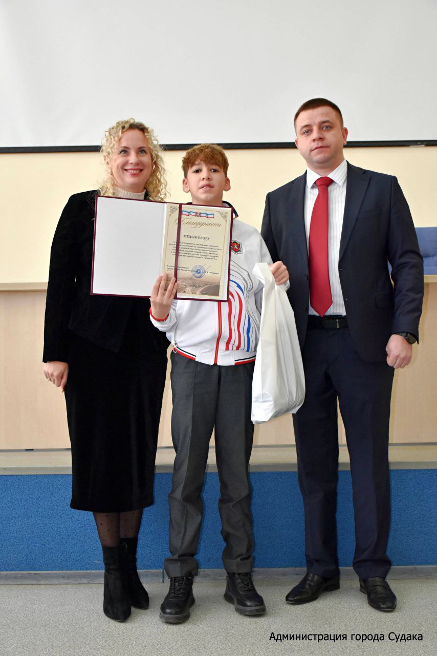 Поздравили ребят с наступающими праздниками, поблагодарили за развитие спорта в нашем округе, за то, что наши спортсмены достойно представляют Судак на региональных и всероссийских соревнованиях Председатель Судакского городского совета Дарья Дейнеко и глава администрации г. Судака Кирилл Чебышев.