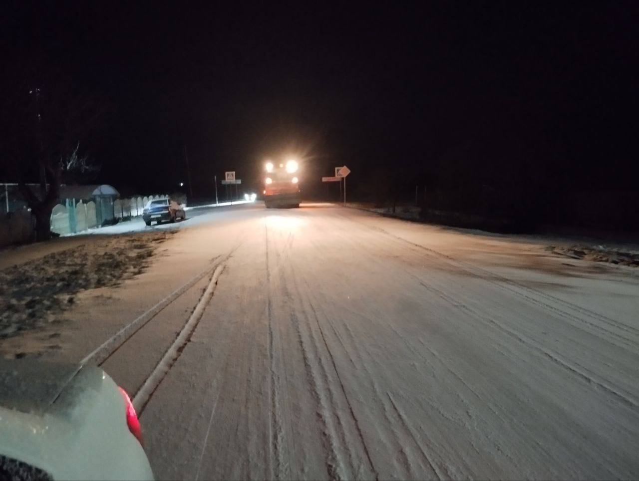 Специалисты ГУП РК «Крымавтодор» и МУП «Райбытсервис» уже трудятся на дорогах расчищая от снега и обрабатывая противогололедной смесью.