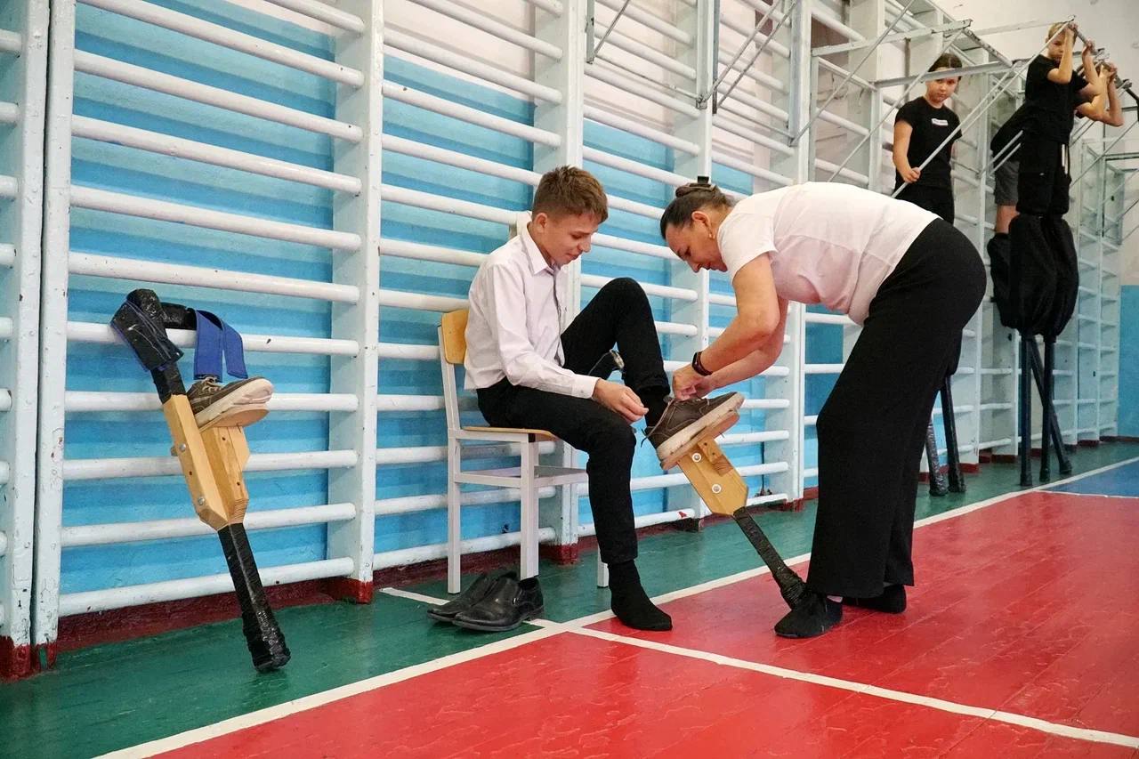 С огромным удовольствием помог ученику 9-го класса санаторной школы-интерната Даниилу Бондарчуку попробовать себя в роли ходулиста, а также сделал подарок, который поможет будущему выпускнику выглядеть на выпускном вечере на все
