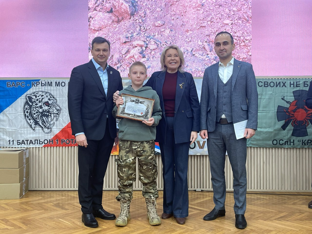 Сегодняшний праздник для тех, кто стоит на страже нашего спокойствия, для тех, кто ждёт и верит дома. Вручили заслуженные награды – удостоверения ветеранов боевых действий, медали «За вклад в победу в СВО», «За активную военно-патриотическую работу», почётные знаки Добровольческого корпуса Минобороны, Республики Крым и другие. Передала поздравления и поблагодарила за службу от лица Главы Крыма Сергея Валерьевича Аксенова. Бесконечное спасибо вам, дорогие, за отвагу, самоотверженность и верность долгу!