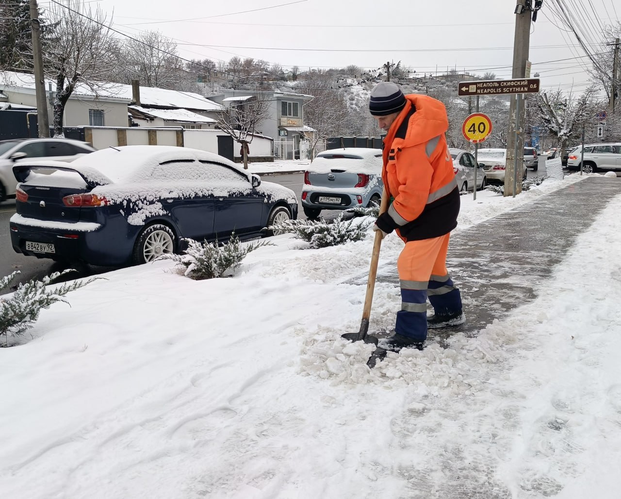 В Симферополе более 400 дворников убирают снег и обрабатывают реагентом тротуары
