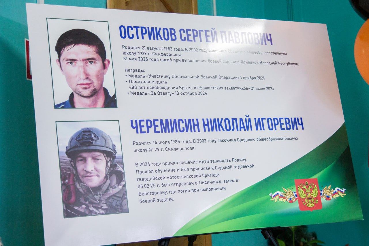 29 декабря 2025 года в МБОУ «СОШ № 29 имени Г. К. Жукова» города Симферополя состоялось торжественное открытие «Парты Героев». Почетное место в школьном классе посвящено выпускникам школы — Острикову Сергею Павловичу и Черемисину Николаю Игоревичу, погибшим при выполнении воинского долга в зоне специальной военной операции.