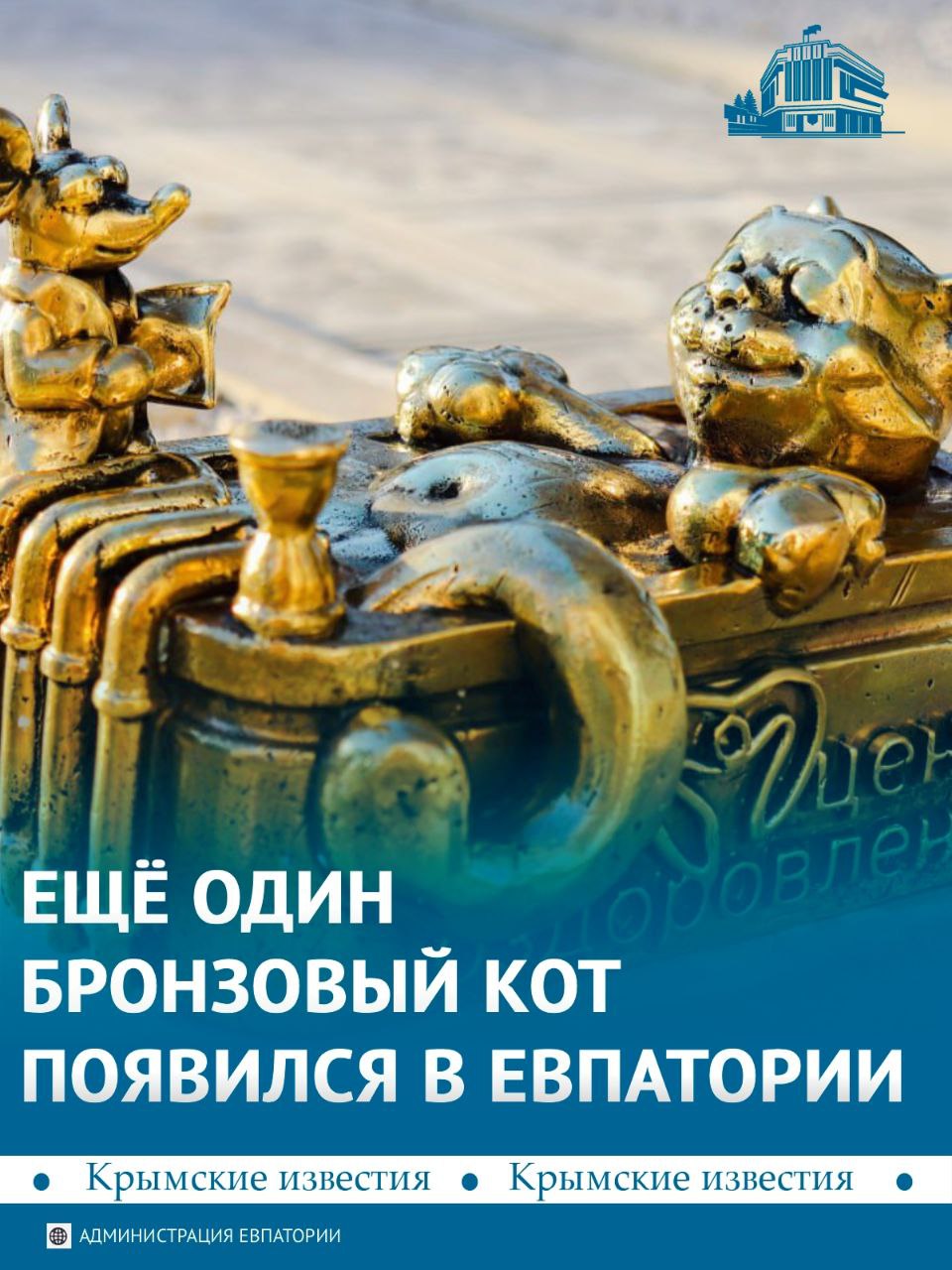 Новый бронзовый житель появился в Евпатории – кот-курортник Кузя, который принимает ванну из рапы. Фигурка стала частью проекта «Евпаторийские коты».