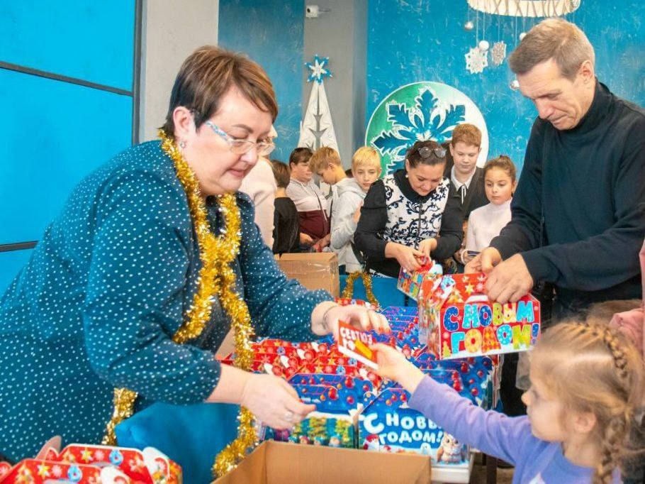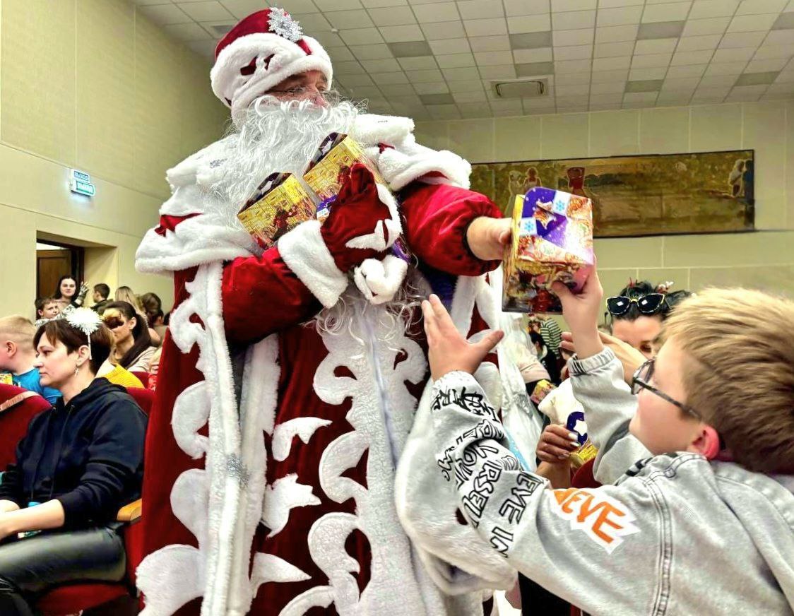 По традиции все дети на новогоднем торжестве получили сладкий подарок.