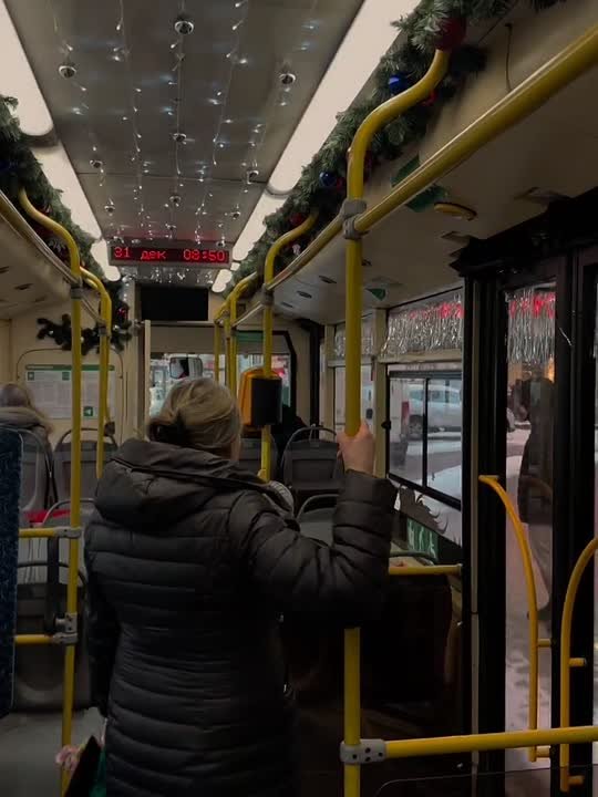 Он украшен внутри и снаружи, а в качестве экипажа в салоне работают Дед Мороз и Снегурочка. Праздничный маршрут будет радовать пассажиров с сегодняшнего дня по 11 января.