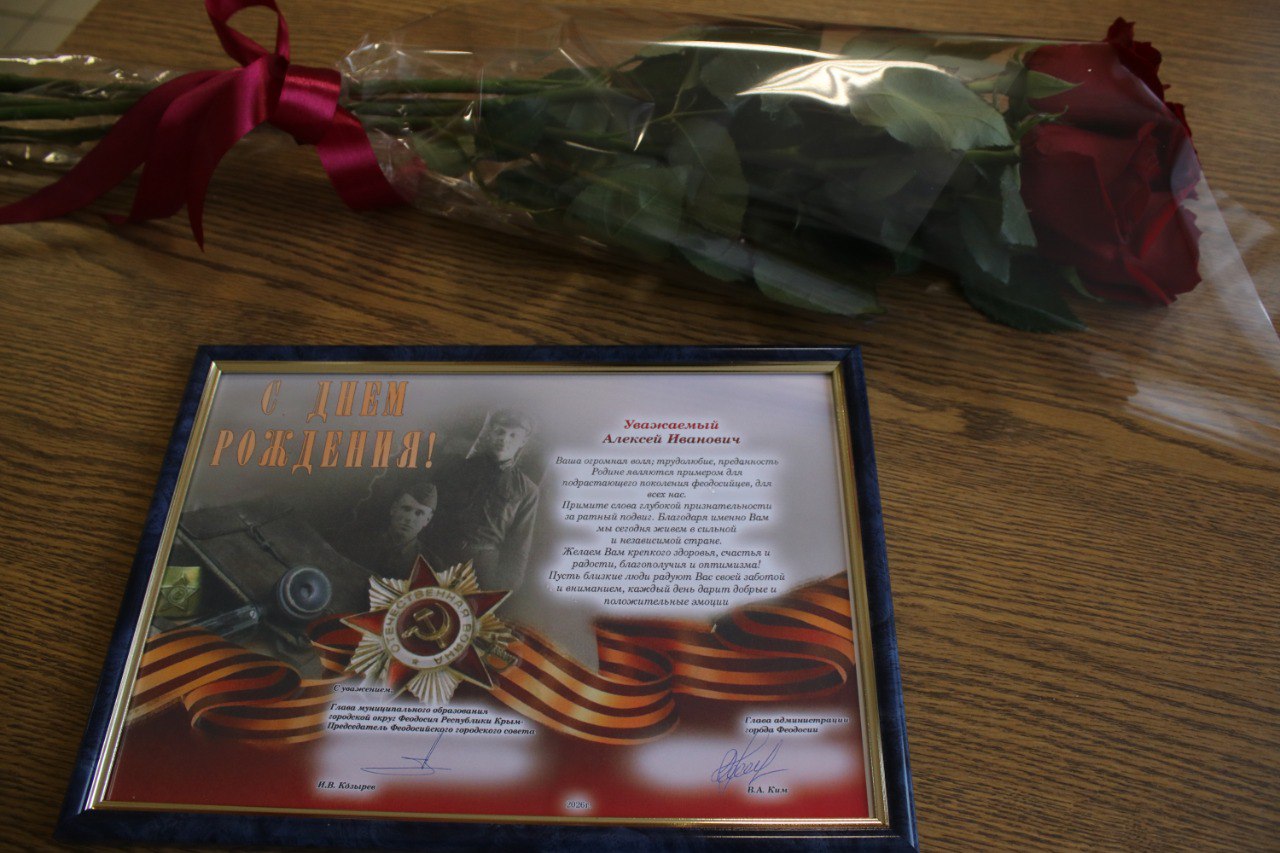 Анатолий Чорный поздравил ветерана от имени руководства города, выразил глубокое уважением его заслугам, отметил, что его огромная воля, трудолюбие и преданность Родине являются примером для юного поколения феодосийцев. Он пожелал жизненных сил, чтобы в добром здравии встретить вековой юбилей.