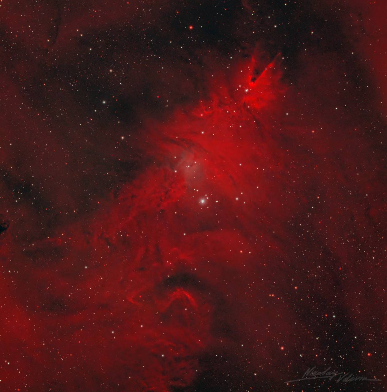 Изображение туманности NGC 2264 в созвездии Единорога, известной за свою форму как «Рождественская ёлка». Снимок сделал астрофотограф Николай Вдовин с использованием специализированного оборудования. Общая выдержка составила 3 часа 45 минут.