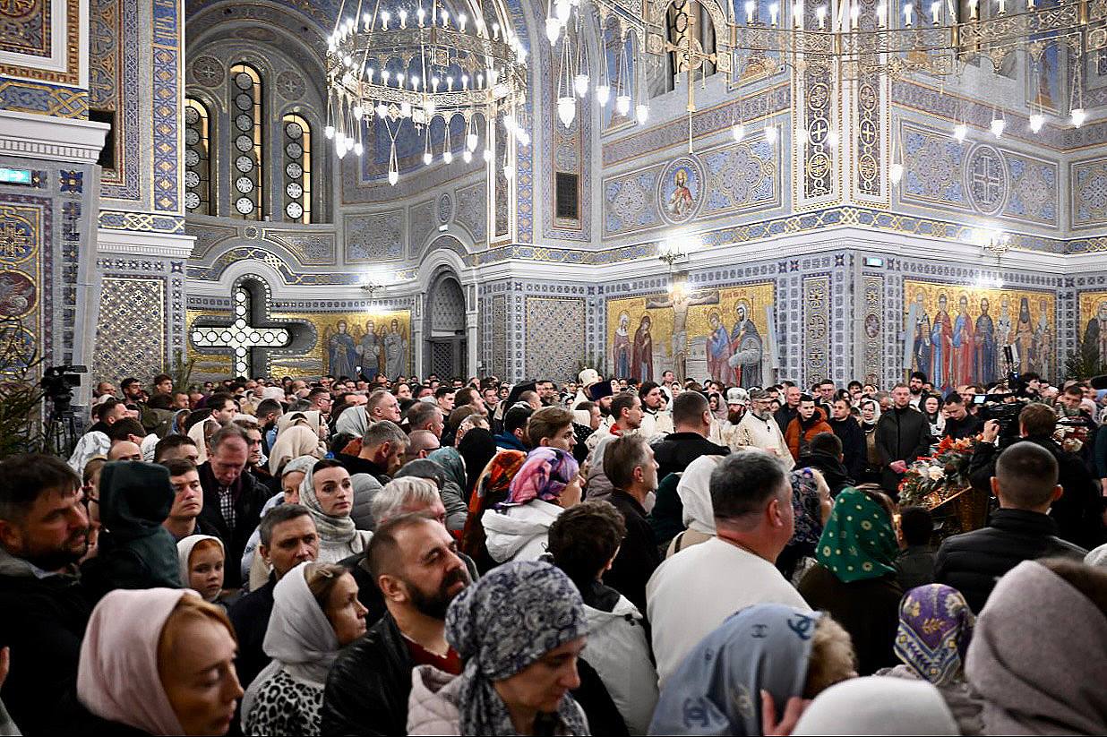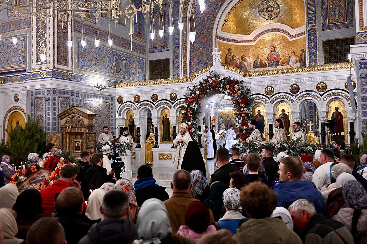 Встретил светлый праздник Рождества Христова на ночной Божественной литургии в Свято-Владимирском соборе Херсонесского монастыря.