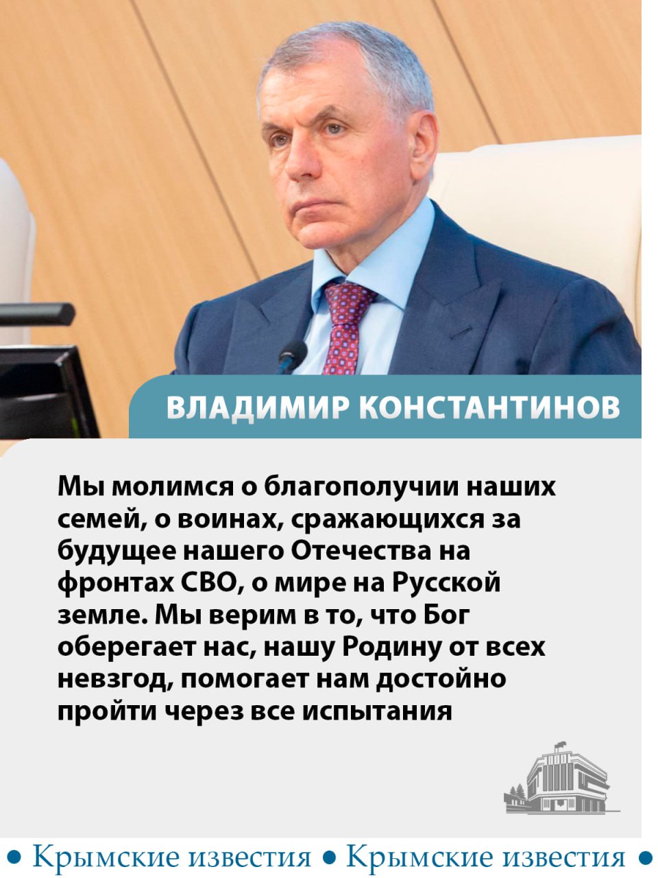 Владимир Константинов поздравил крымчан с праздником и подчеркнул, что православный праздник объединяет всех идеалами справедливости, добра и милосердия.