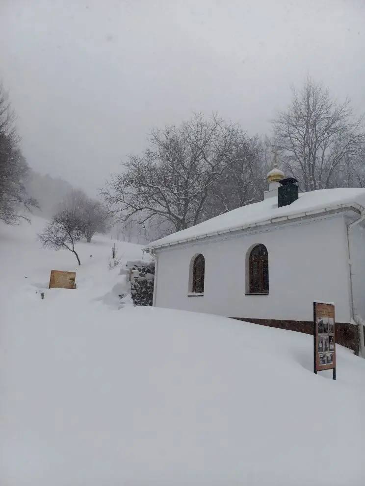 После обильных снегопадов и резкого таяния снега подтопило низменные участки дороги до монастыря. Высота снежного покрова в горах достигала 1,5 метра.