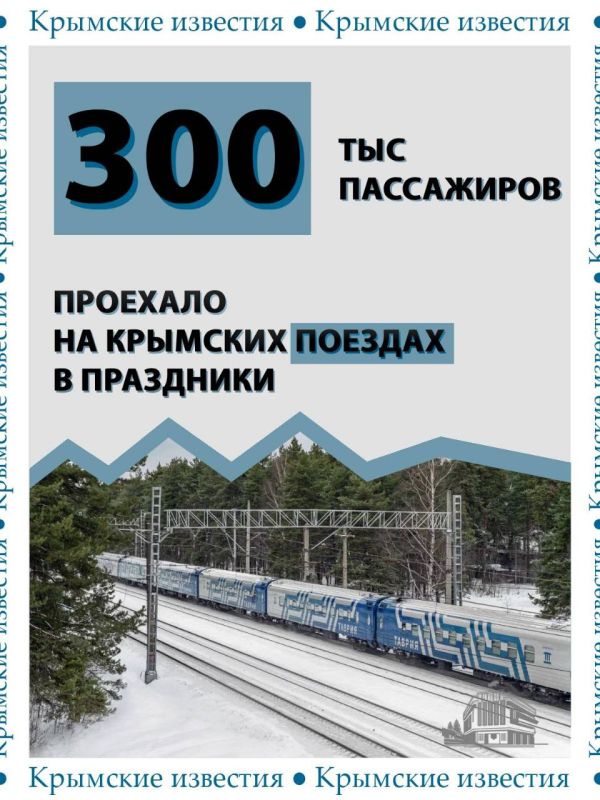 Почти 300 тыс пассажиров перевезли крымские поезда в новогодние праздники. В этот период курсировали 12 составов.