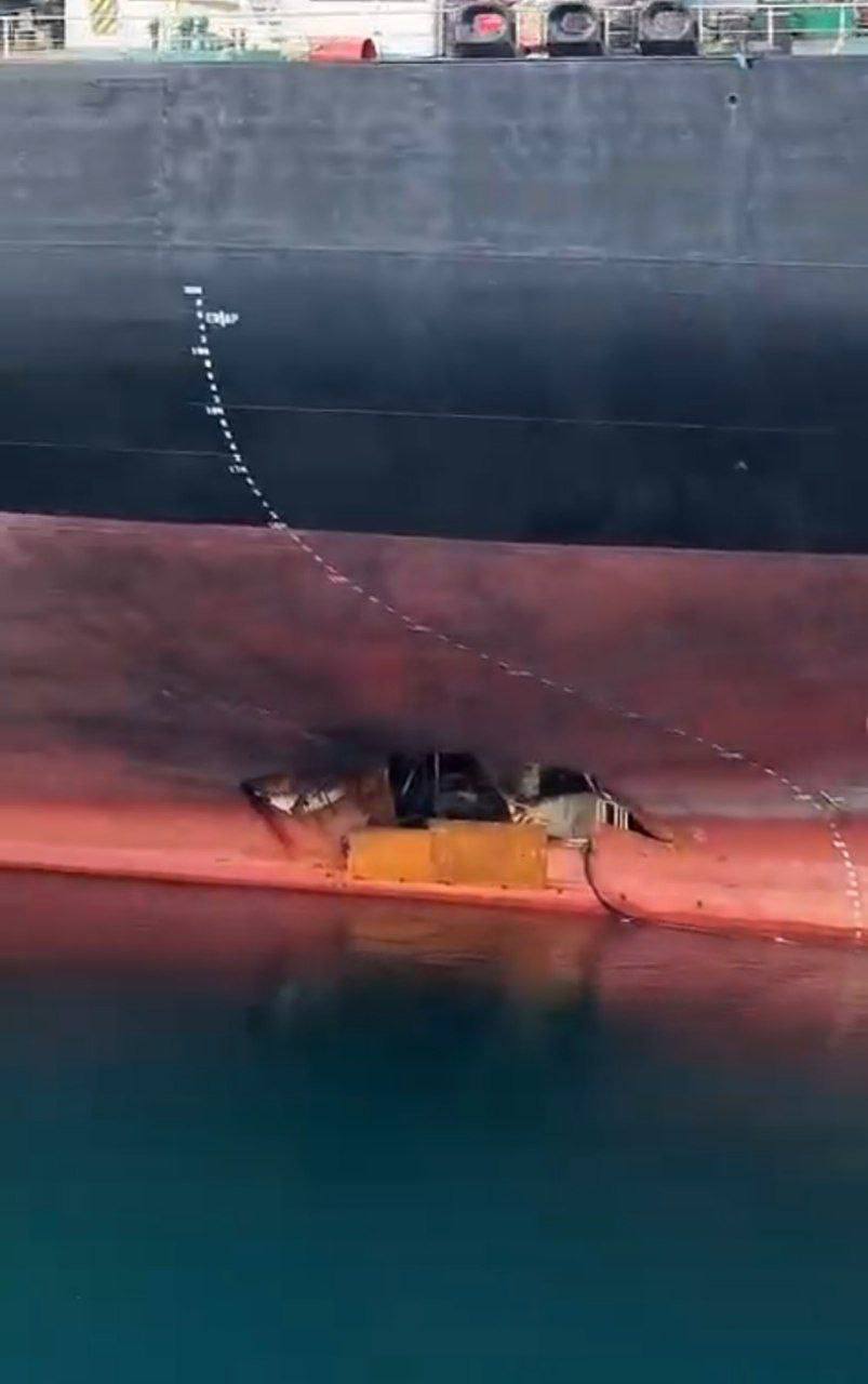 Последствия ударов украинских БЭК Sea Baby по танкеру Dashan в Черном море 10 декабря 2025 года.