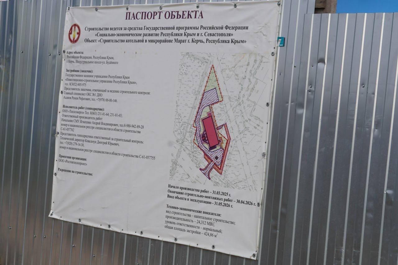 Возведение объекта ведётся по заказу ГКУ «Инвестстрой Республики Крым». На сегодняшний день строительство выполнено на 55%. Основные усилия сосредоточены на завершающем этапе монтажа оборудования и его обвязки, а также на сборке мачты для дымоходной трубы. В ближайшее время начнутся работы по прокладке наружных тепловых сетей. Сегодня на объекте 10 человек и одна единица техники.