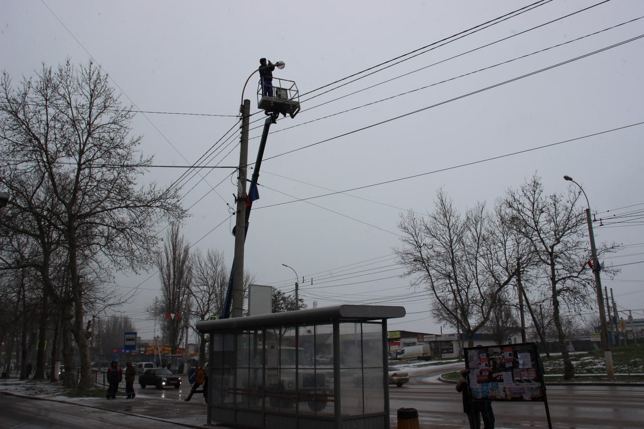 Предприятие «ГорсветКерчь» проводит плановые работы по обслуживанию и ремонту сетей наружного освещения в разных районах города. Сегодня одна из бригад осуществляет ревизию осветительных приборов вдоль троллейбусной линии на улицах Горького и Генерала Петрова. Неисправные устройства мастера ремонтируют или демонтируют и меняют на новые. Ведется ремонт на ул. Кирова, еще одна бригада отрабатывает обращения жителей.