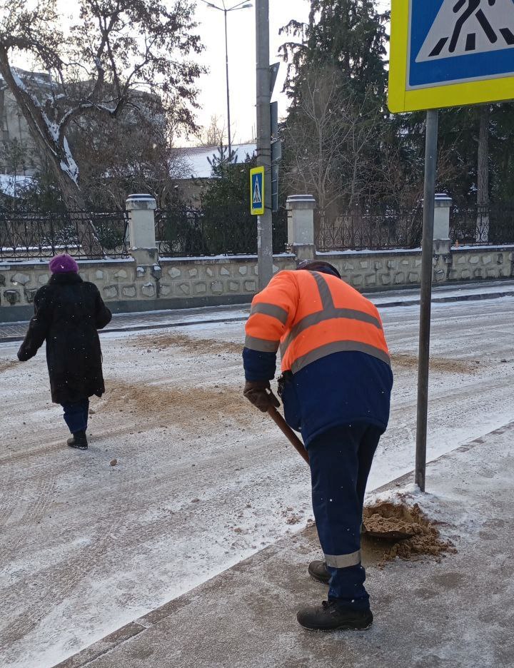 Дворники МБУ «Феодосийская служба благоустройства» и подрядных организаций к уборке тротуаров от снега приступили еще вчера вечером. С раннего утра продолжается работа по россыпи противогололедных материалов как на проезжей части, так и на пешеходных переходах.