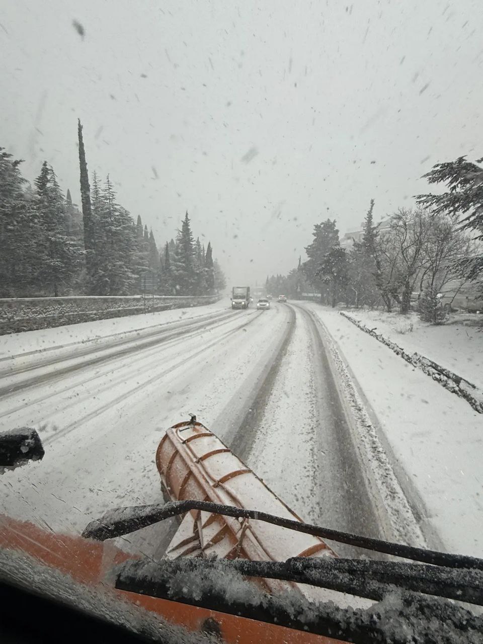В Ялте и Алуште наблюдаются обильные осадки в виде снега. На автомобильных дорогах работает дорожная техника — проводится расчистка проезжей части и обработка противогололёдными материалами.