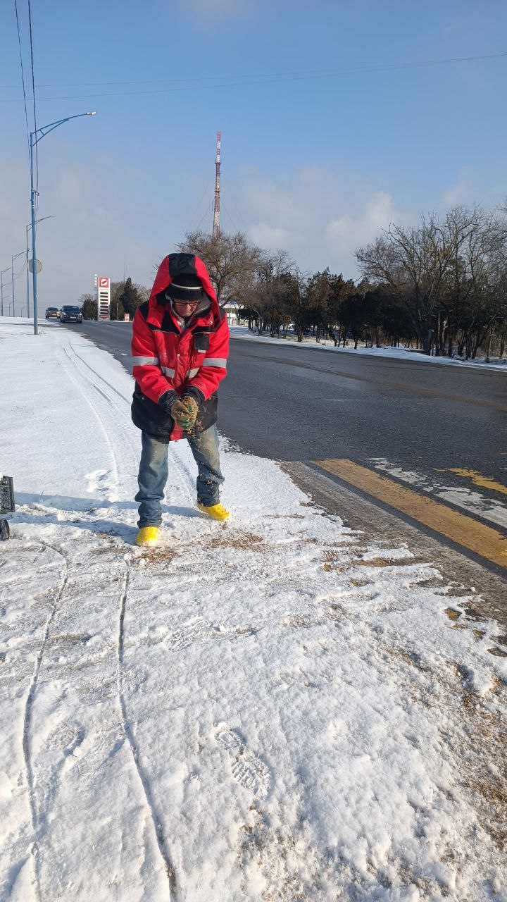 Израсходовано больше 5 тонн материала. Коммунальной службой города задействованы больше 100 человек.