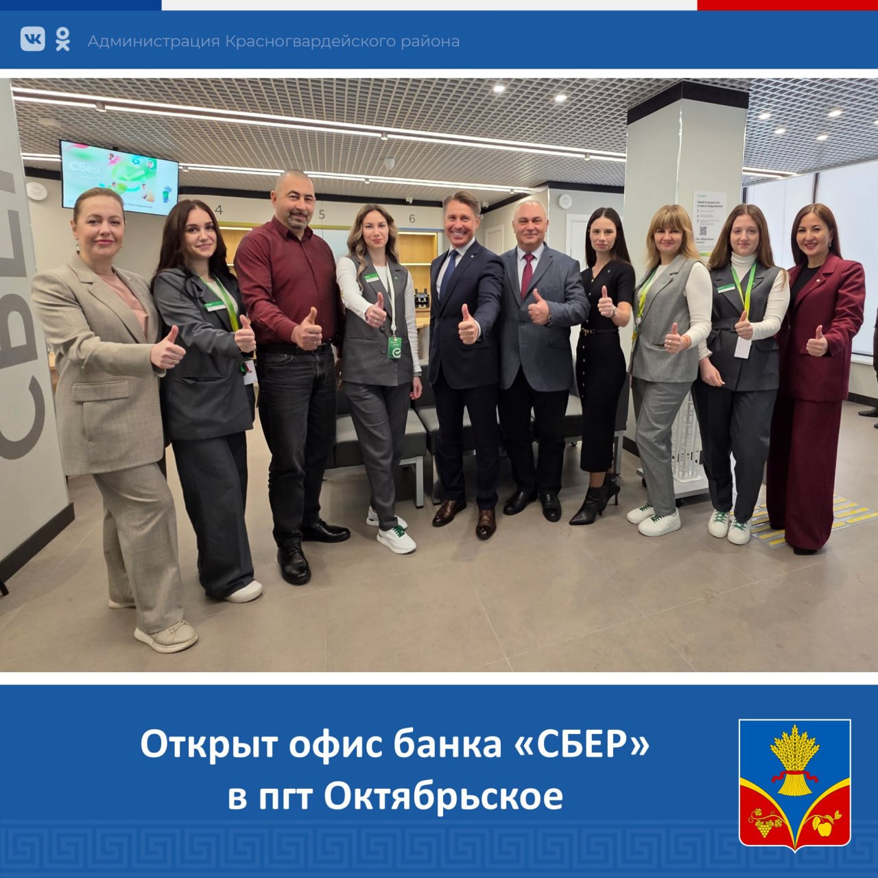 Это уже второй офис Сбера в Красногвардейском районе: с июня 2025 года банк активно работает в пгт Красногвардейское, а теперь и в пгт Октябрьское.