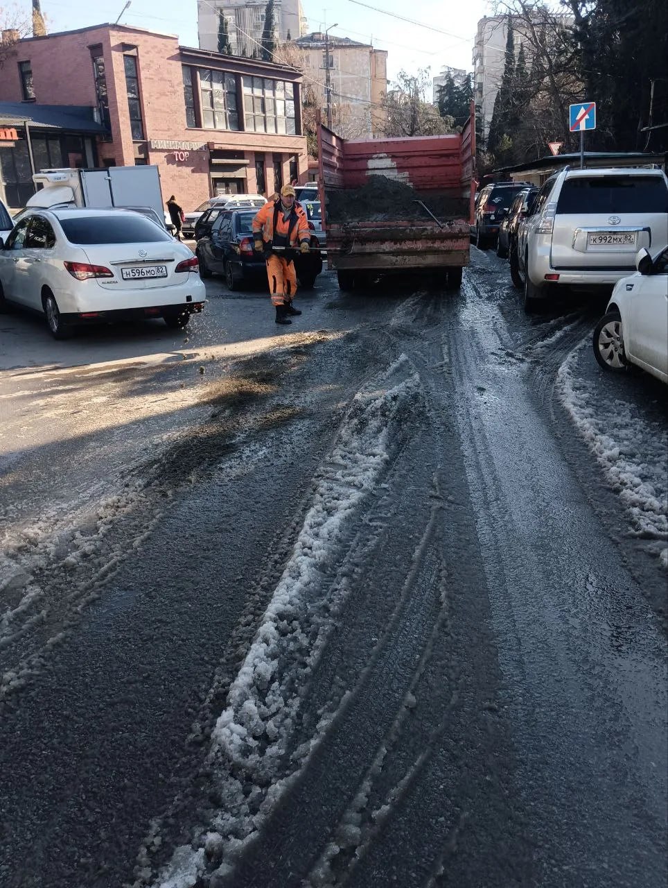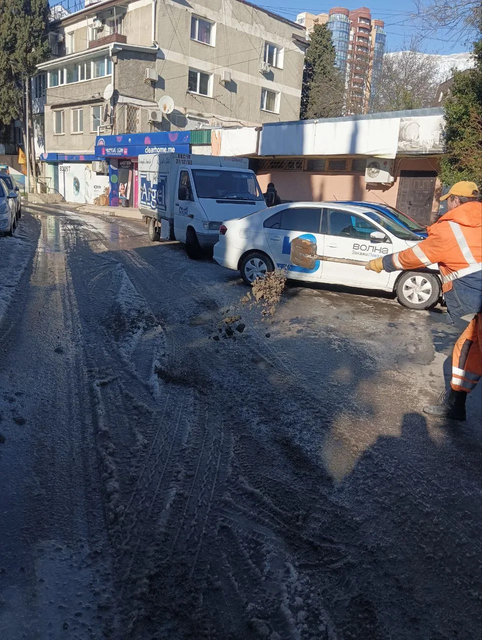 Снегопад в Ялте завершился – коммунальщики оперативно расчищают улицы города.