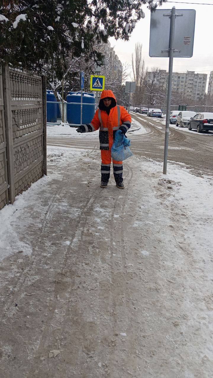 Помимо очистки территорий, проводится обработка пешеходных зон, тротуаров и остановок общественного транспорта противогололёдными материалами для обеспечения безопасносного и комфортного передвижения пешеходов.